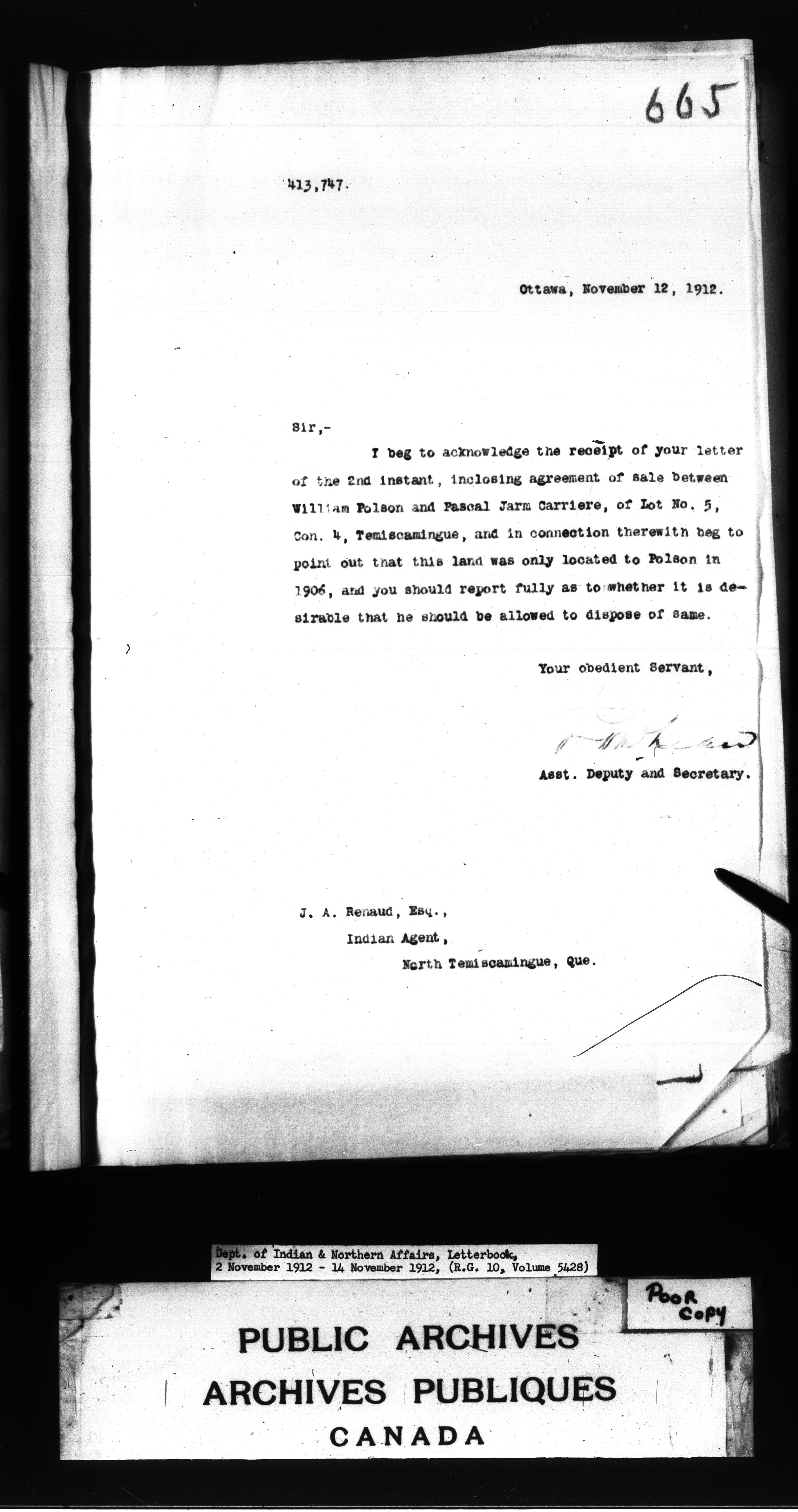Department of Indian Affairs : Letterbooks of out-going correspondence relating to the administration of Indian Affairs in both eastern and western Canada, 1871-1920 - 8851