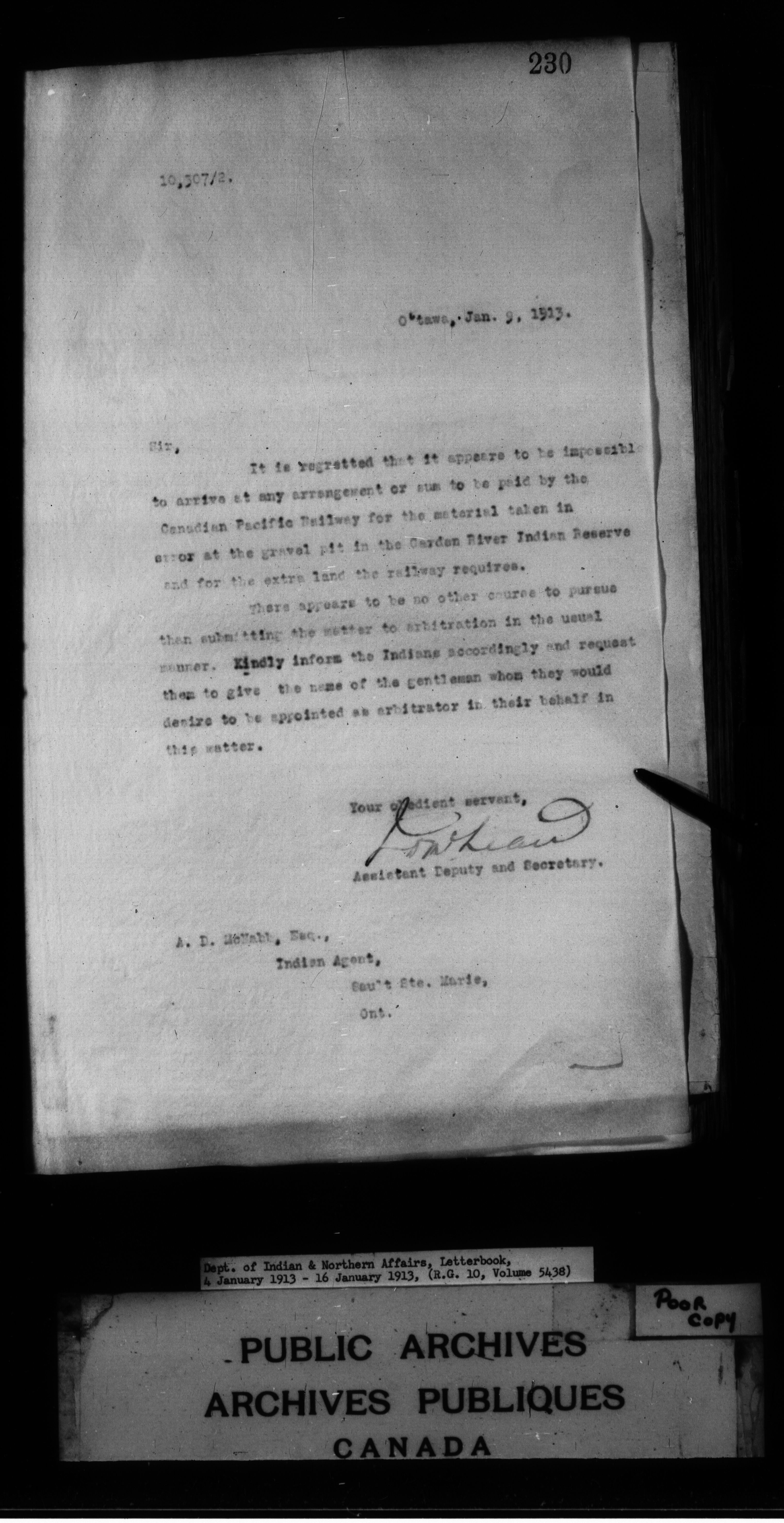 Department of Indian Affairs : Letterbooks of out-going correspondence relating to the administration of Indian Affairs in both eastern and western Canada, 1871-1920 - 8853