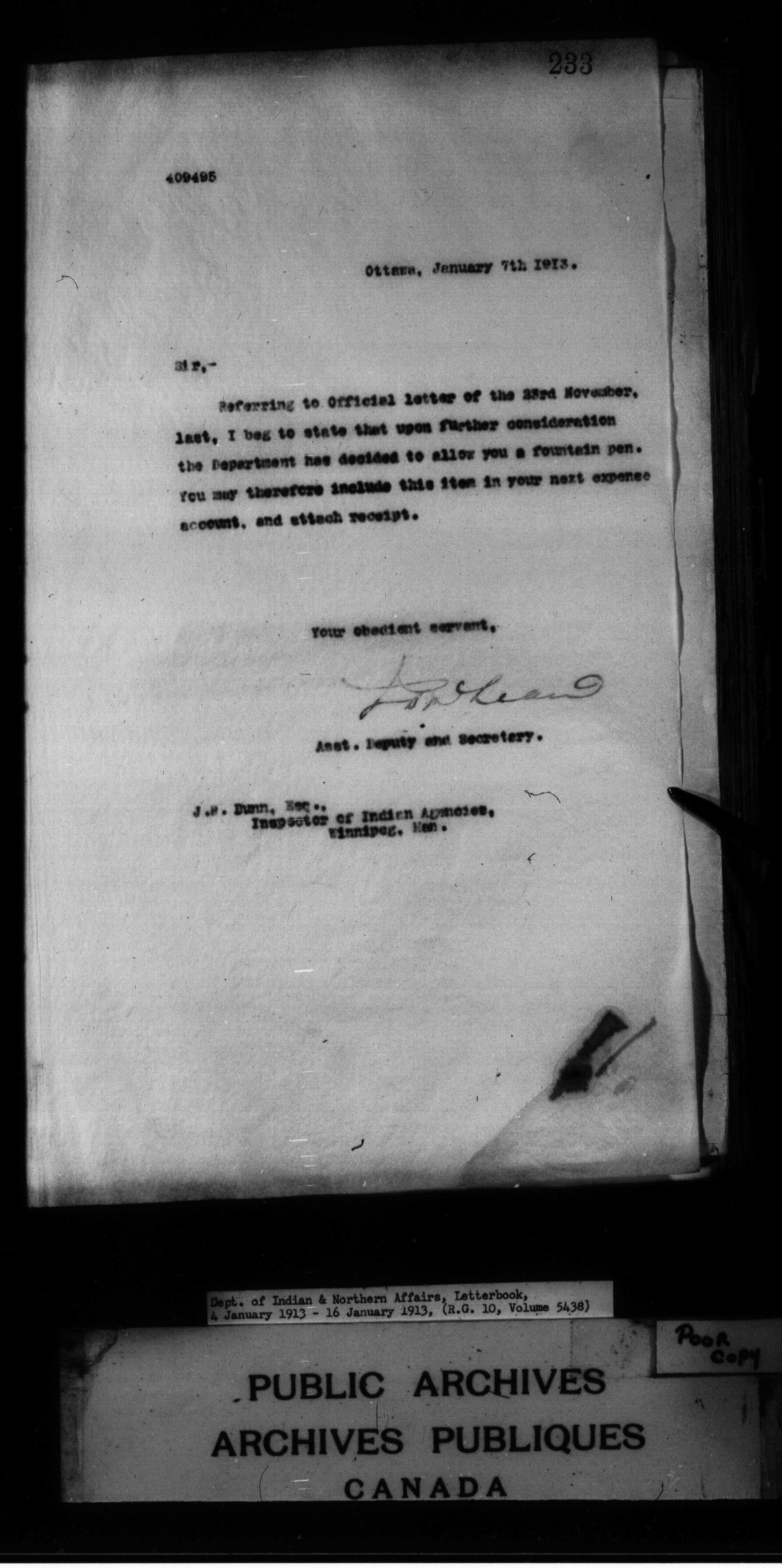 Department of Indian Affairs : Letterbooks of out-going correspondence relating to the administration of Indian Affairs in both eastern and western Canada, 1871-1920 - 8853