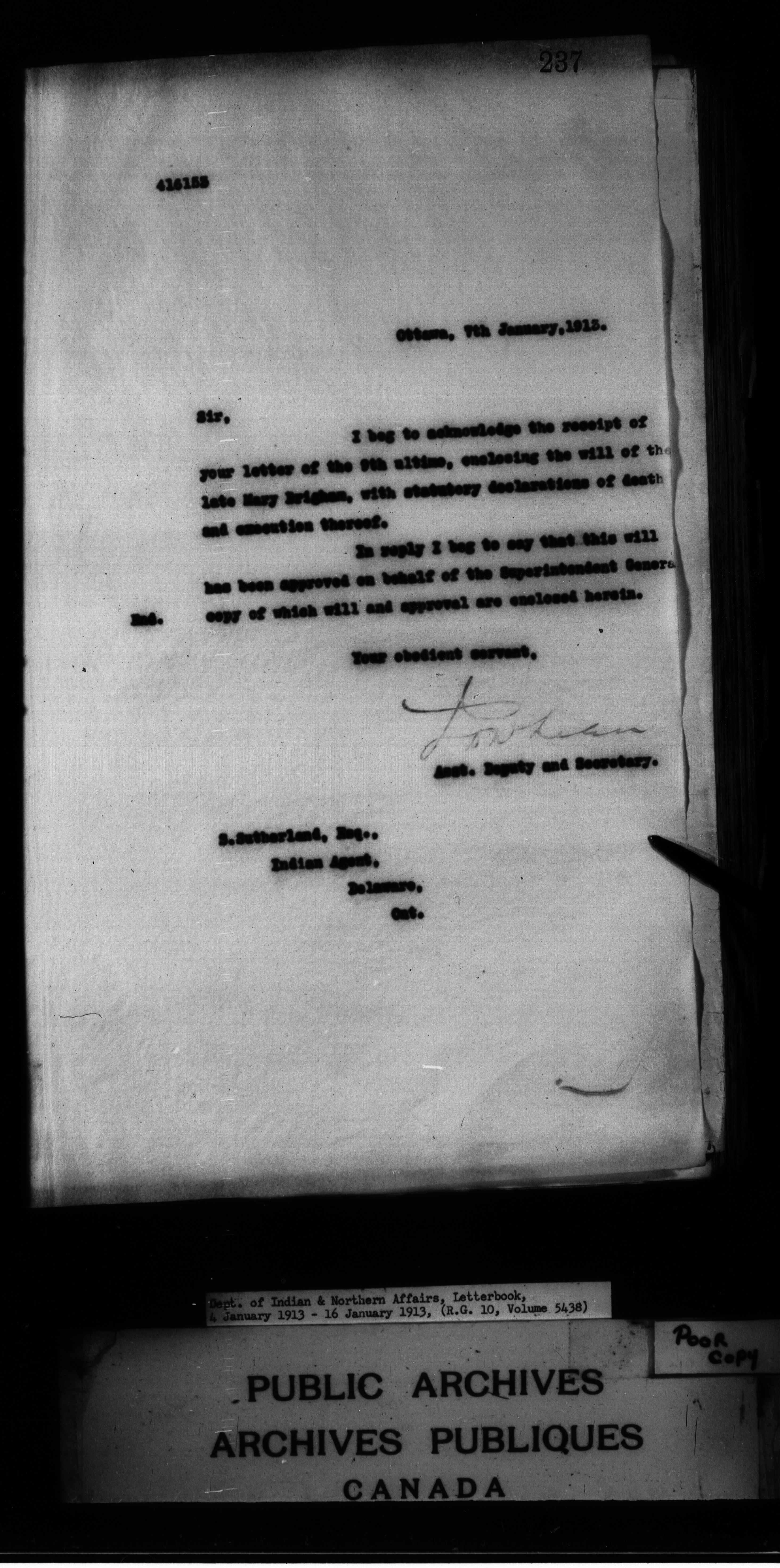 Department of Indian Affairs : Letterbooks of out-going correspondence relating to the administration of Indian Affairs in both eastern and western Canada, 1871-1920 - 8853