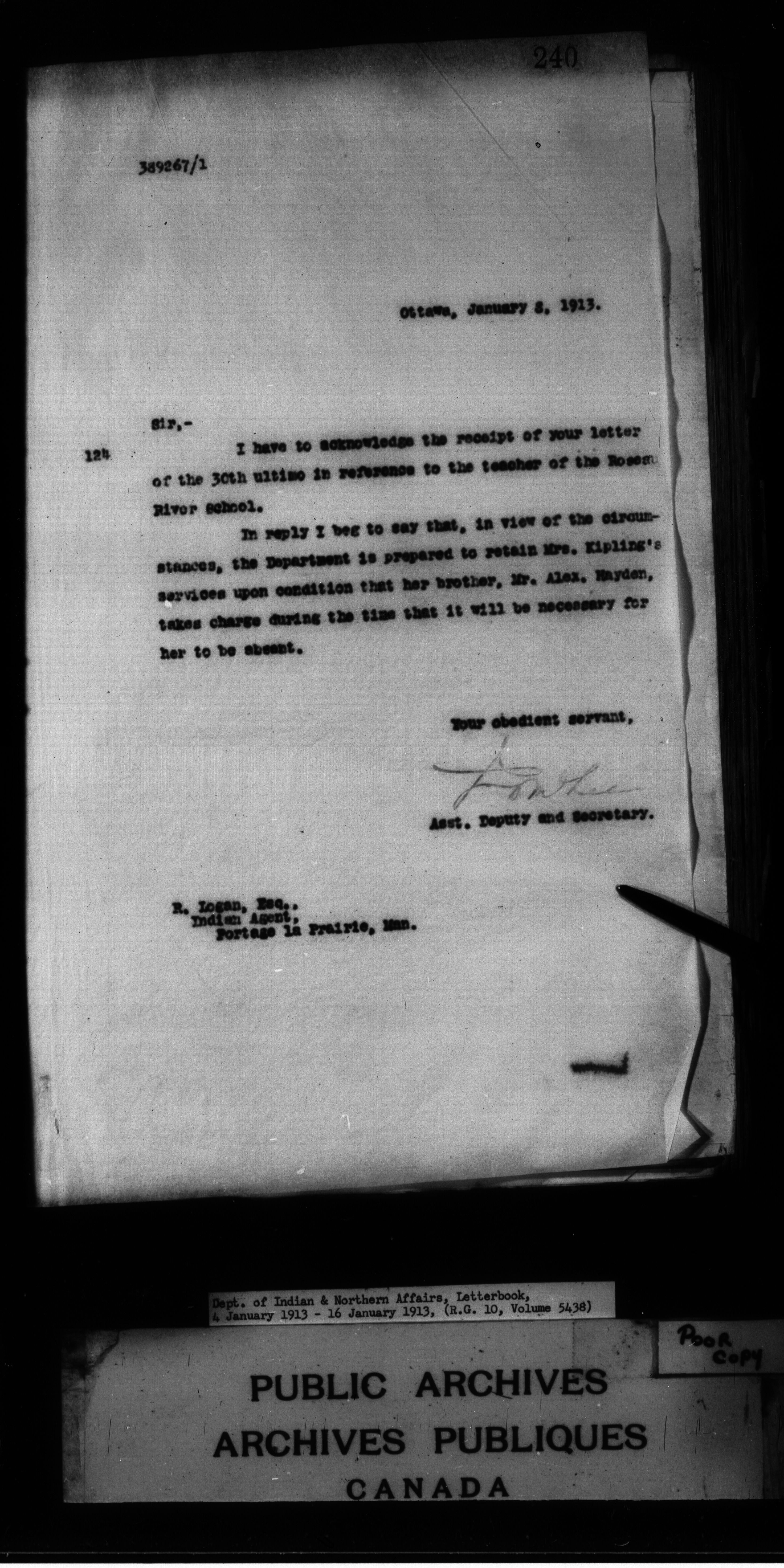 Department of Indian Affairs : Letterbooks of out-going correspondence relating to the administration of Indian Affairs in both eastern and western Canada, 1871-1920 - 8853