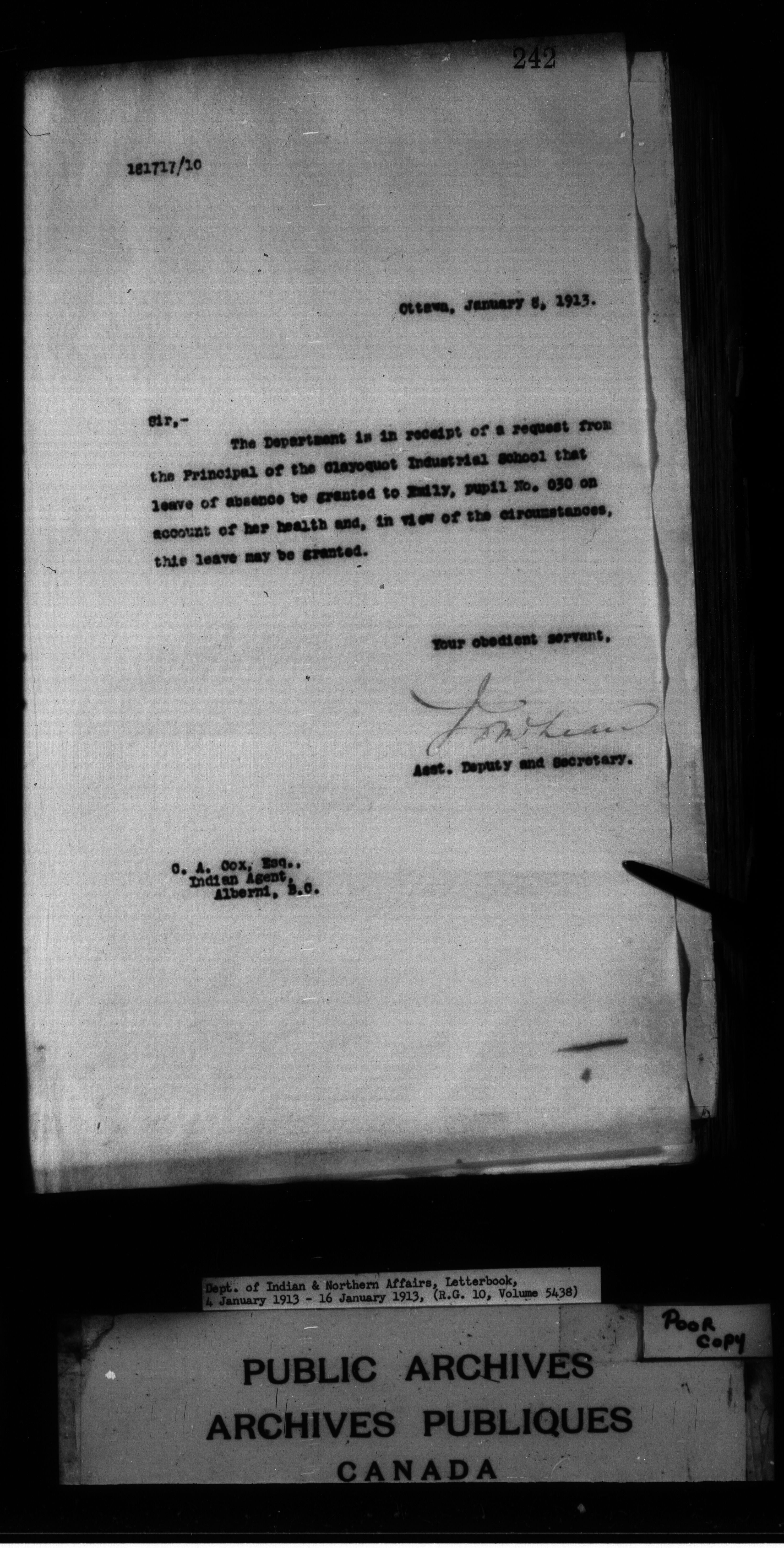 Department of Indian Affairs : Letterbooks of out-going correspondence relating to the administration of Indian Affairs in both eastern and western Canada, 1871-1920 - 8853