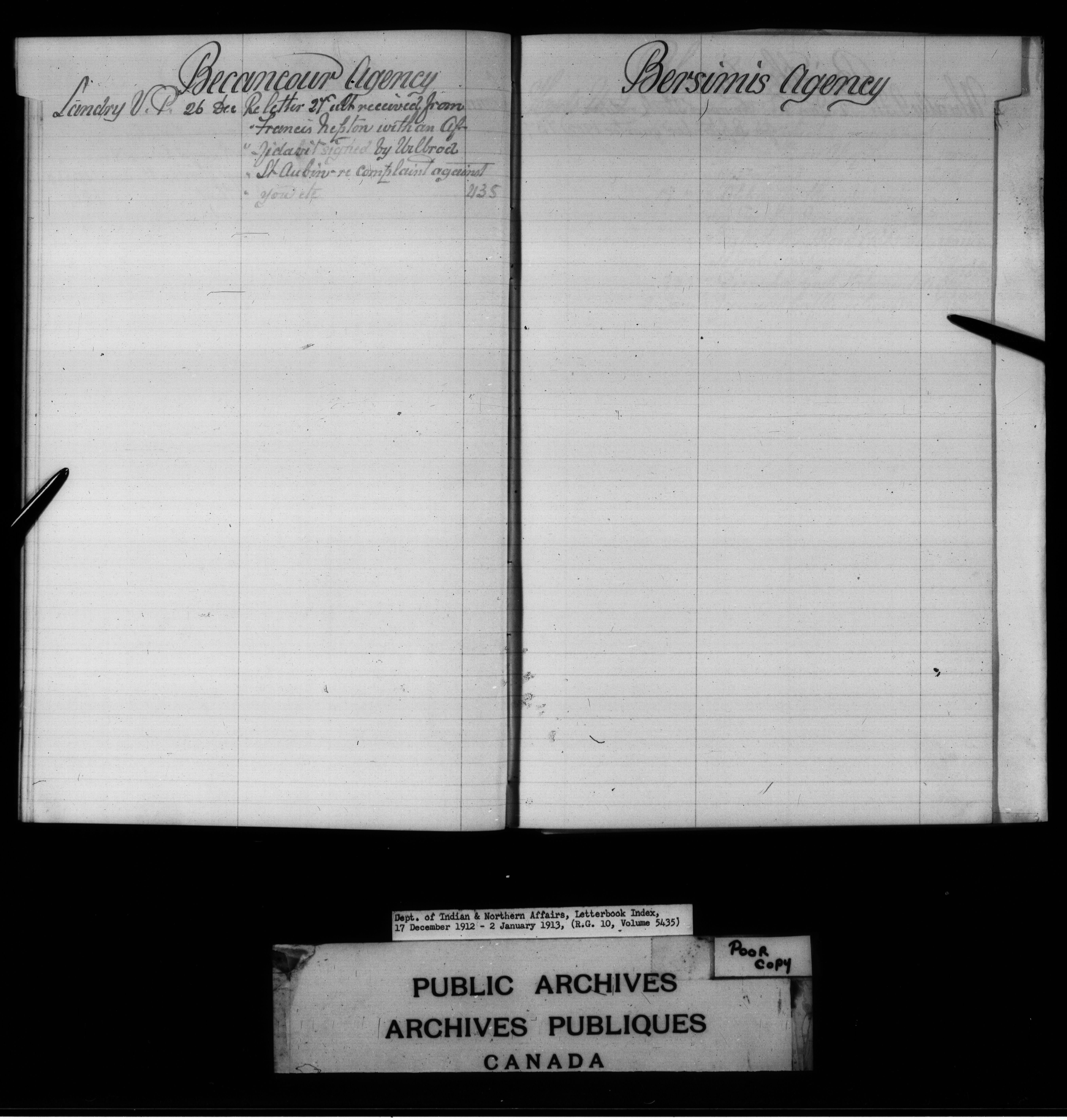 Department of Indian Affairs : Letterbooks of out-going correspondence relating to the administration of Indian Affairs in both eastern and western Canada, 1871-1920 - 8853