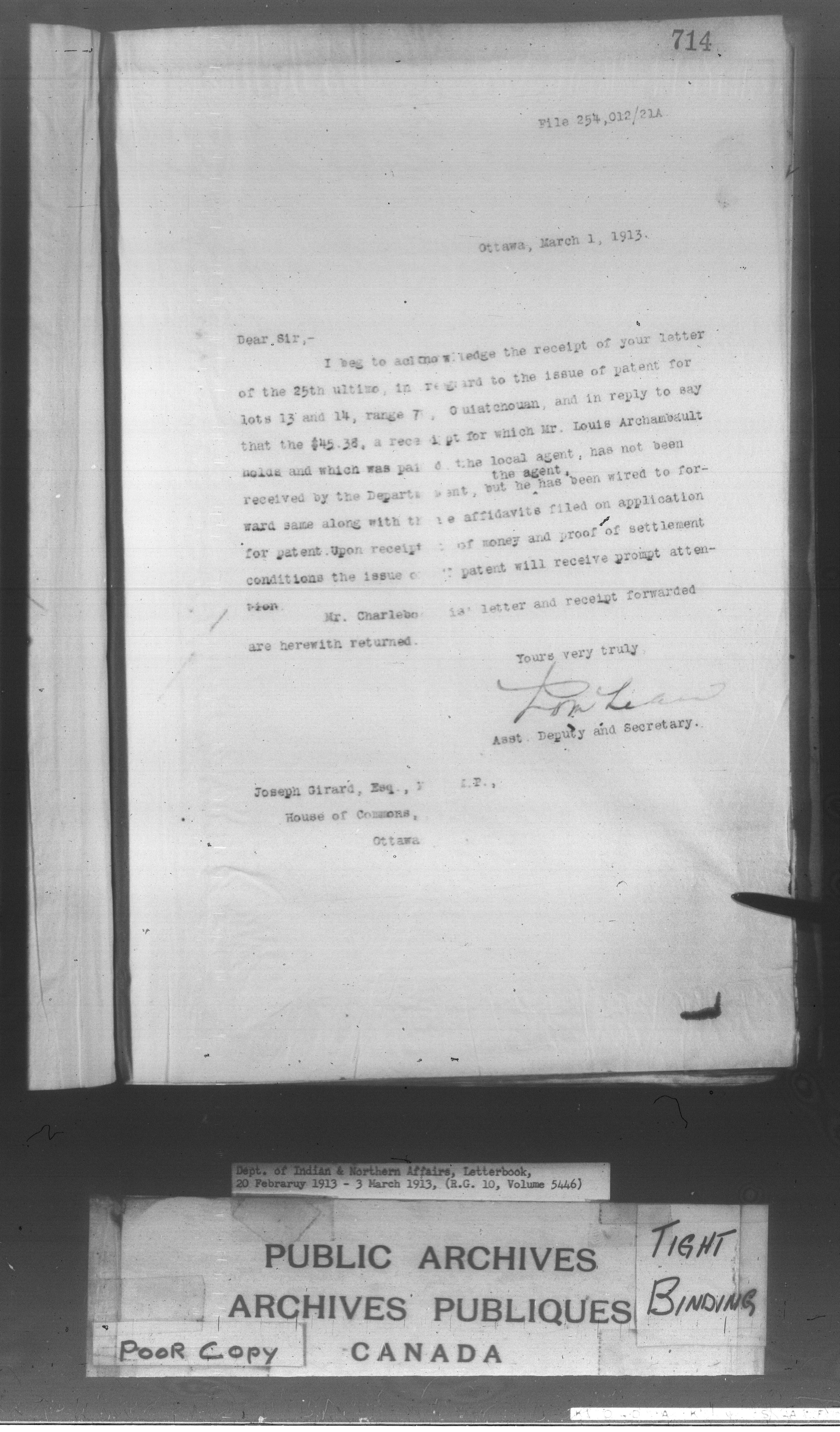 Department of Indian Affairs : Letterbooks of out-going correspondence relating to the administration of Indian Affairs in both eastern and western Canada, 1871-1920 - 8856