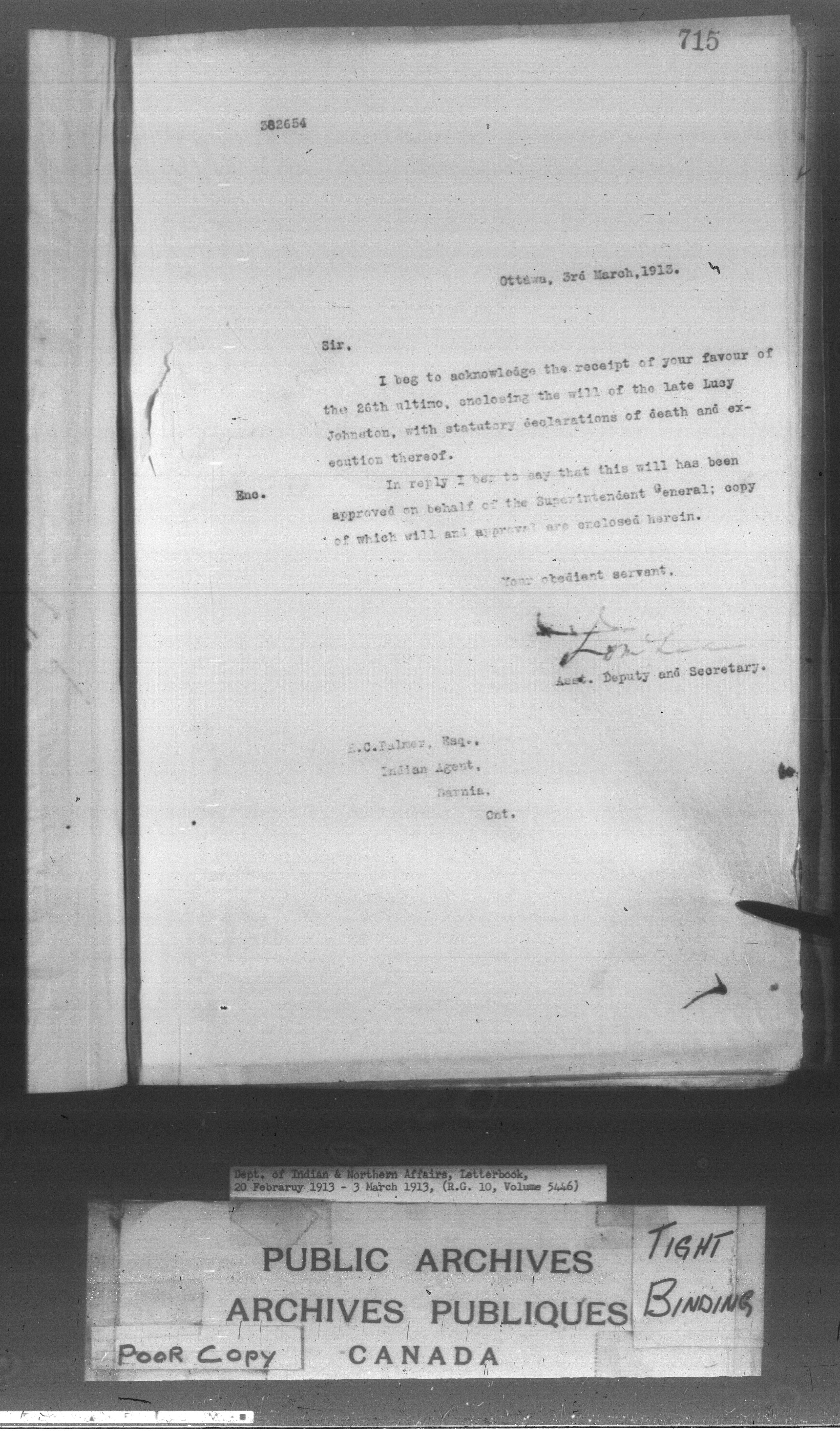 Department of Indian Affairs : Letterbooks of out-going correspondence relating to the administration of Indian Affairs in both eastern and western Canada, 1871-1920 - 8856