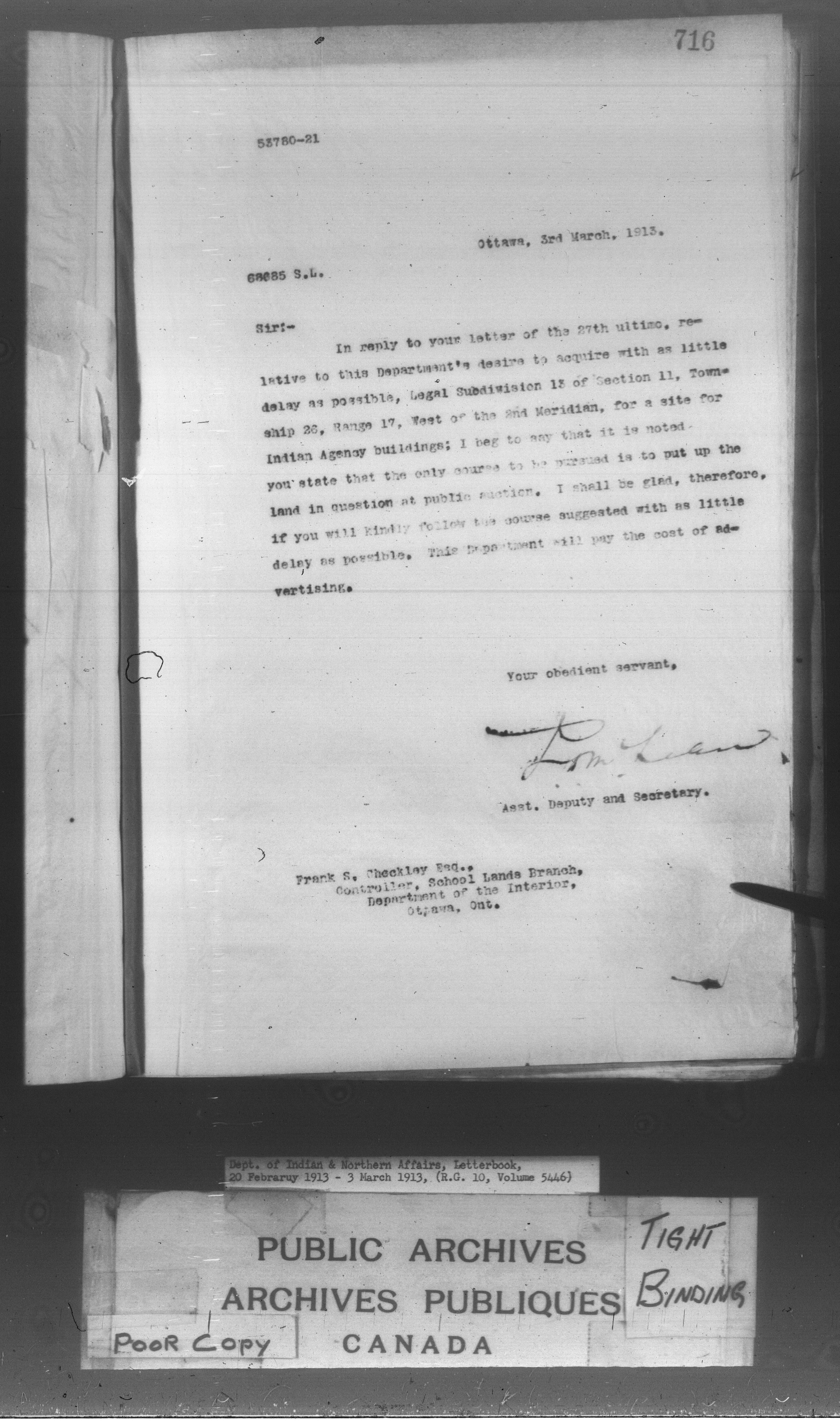 Department of Indian Affairs : Letterbooks of out-going correspondence relating to the administration of Indian Affairs in both eastern and western Canada, 1871-1920 - 8856