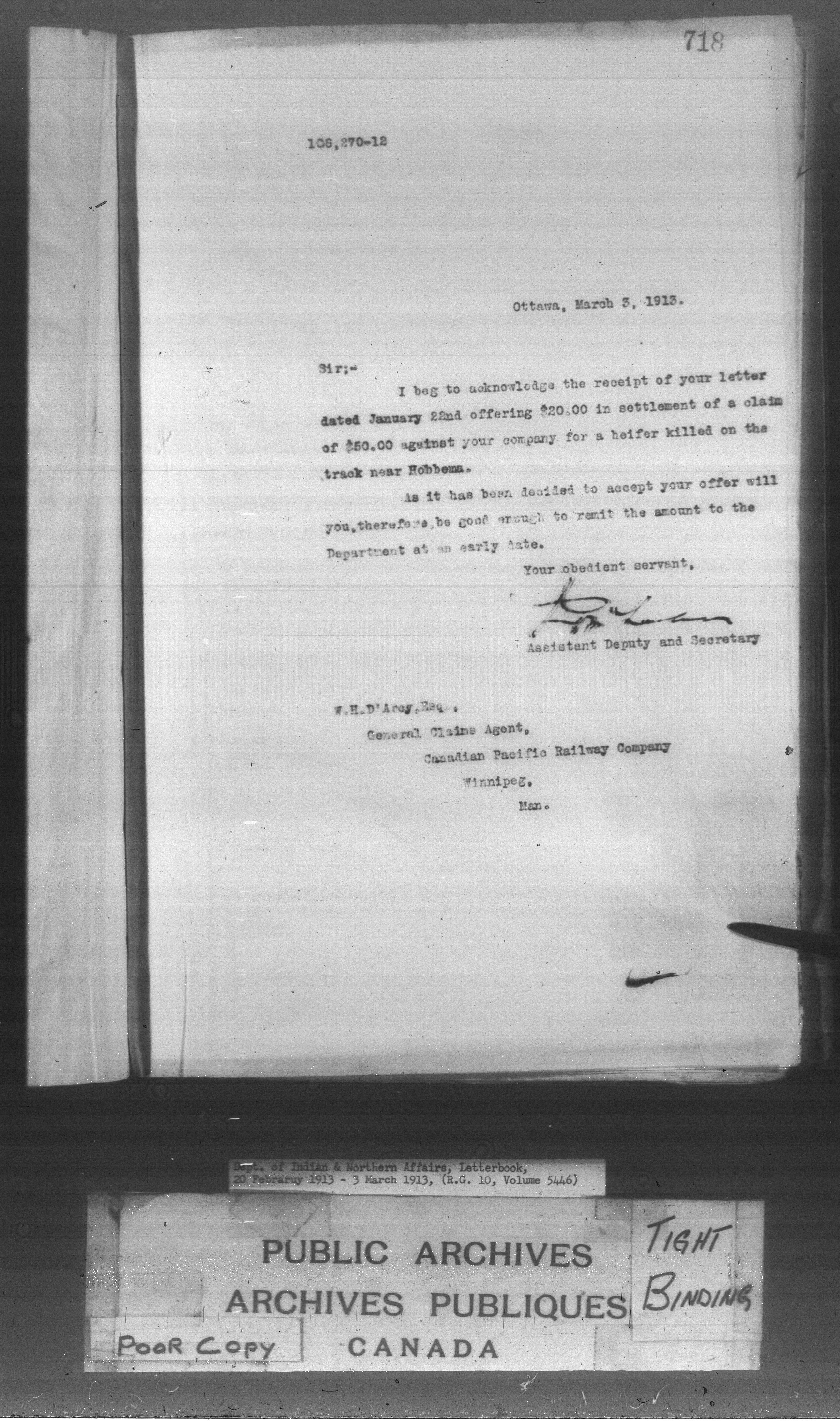 Department of Indian Affairs : Letterbooks of out-going correspondence relating to the administration of Indian Affairs in both eastern and western Canada, 1871-1920 - 8856