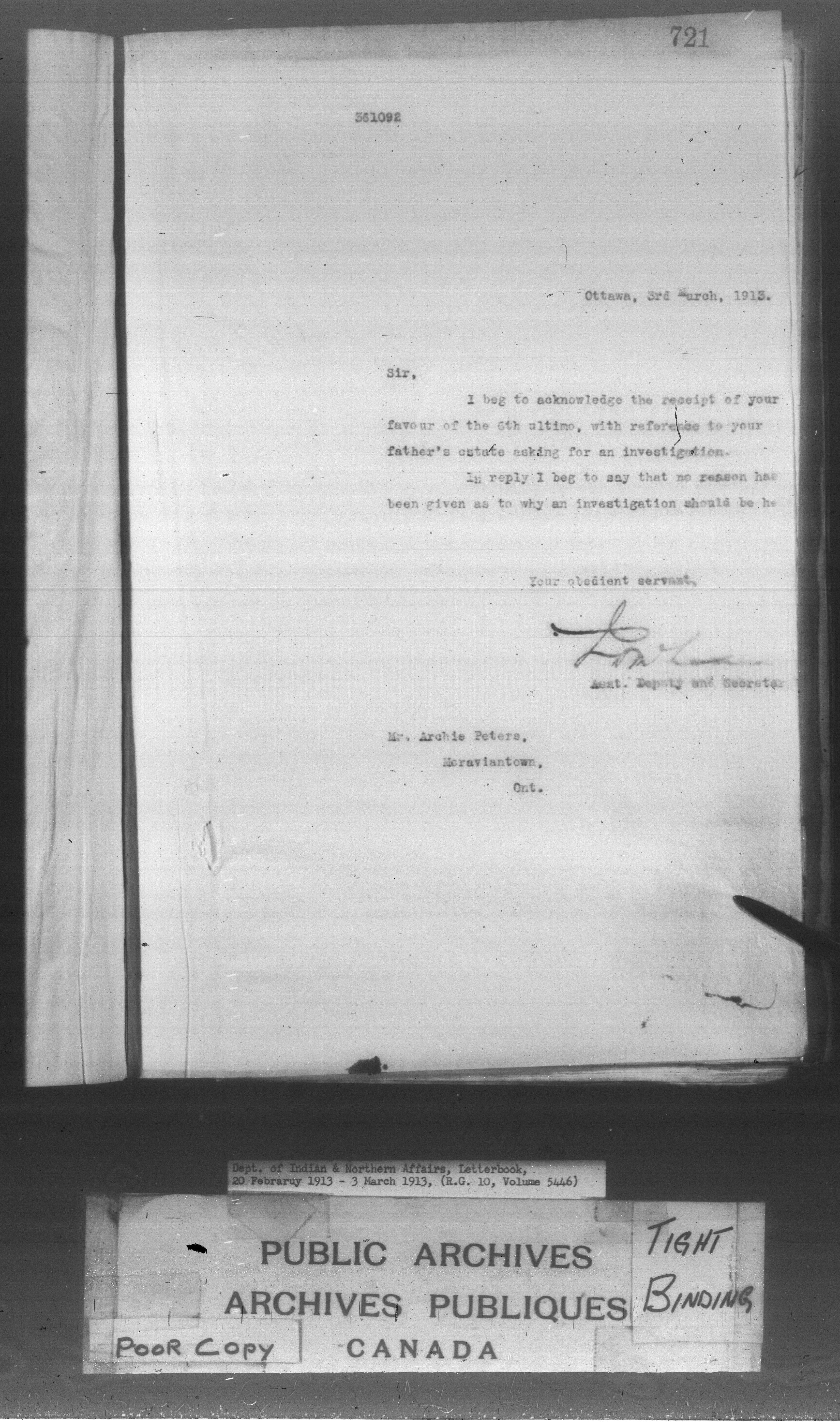 Department of Indian Affairs : Letterbooks of out-going correspondence relating to the administration of Indian Affairs in both eastern and western Canada, 1871-1920 - 8856