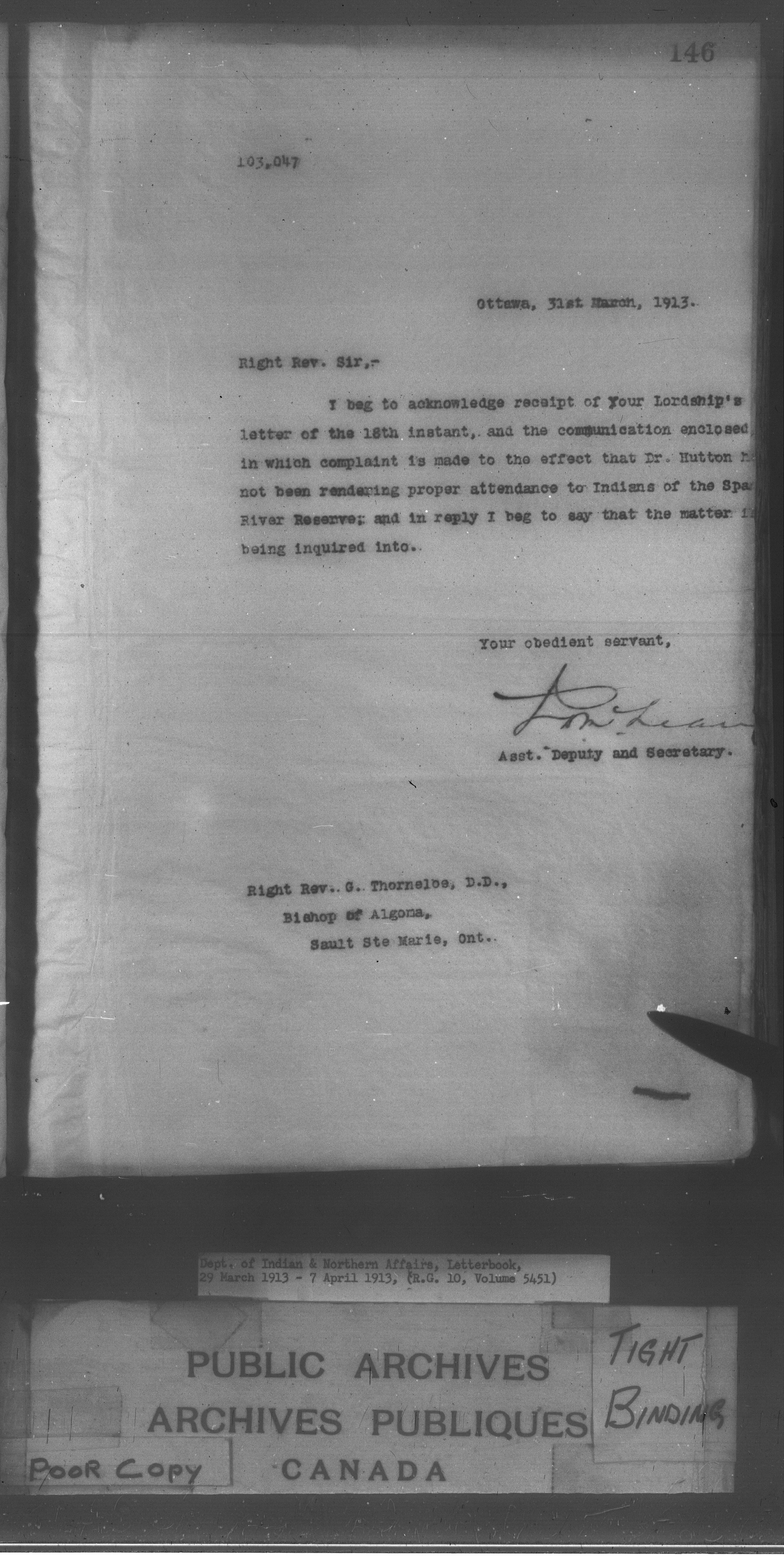 Department of Indian Affairs : Letterbooks of out-going correspondence relating to the administration of Indian Affairs in both eastern and western Canada, 1871-1920 - 8858