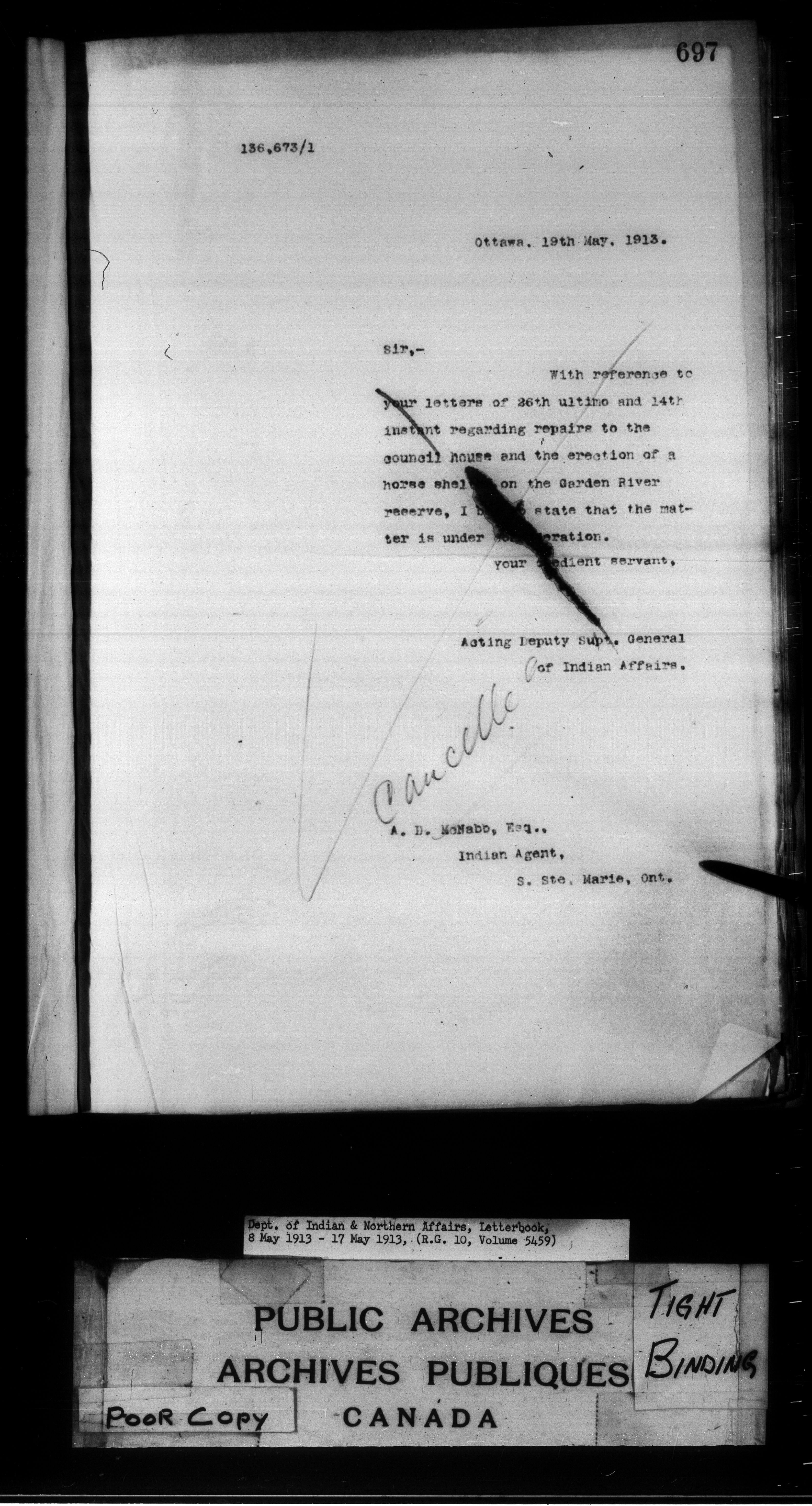 Department of Indian Affairs : Letterbooks of out-going correspondence relating to the administration of Indian Affairs in both eastern and western Canada, 1871-1920 - 8860