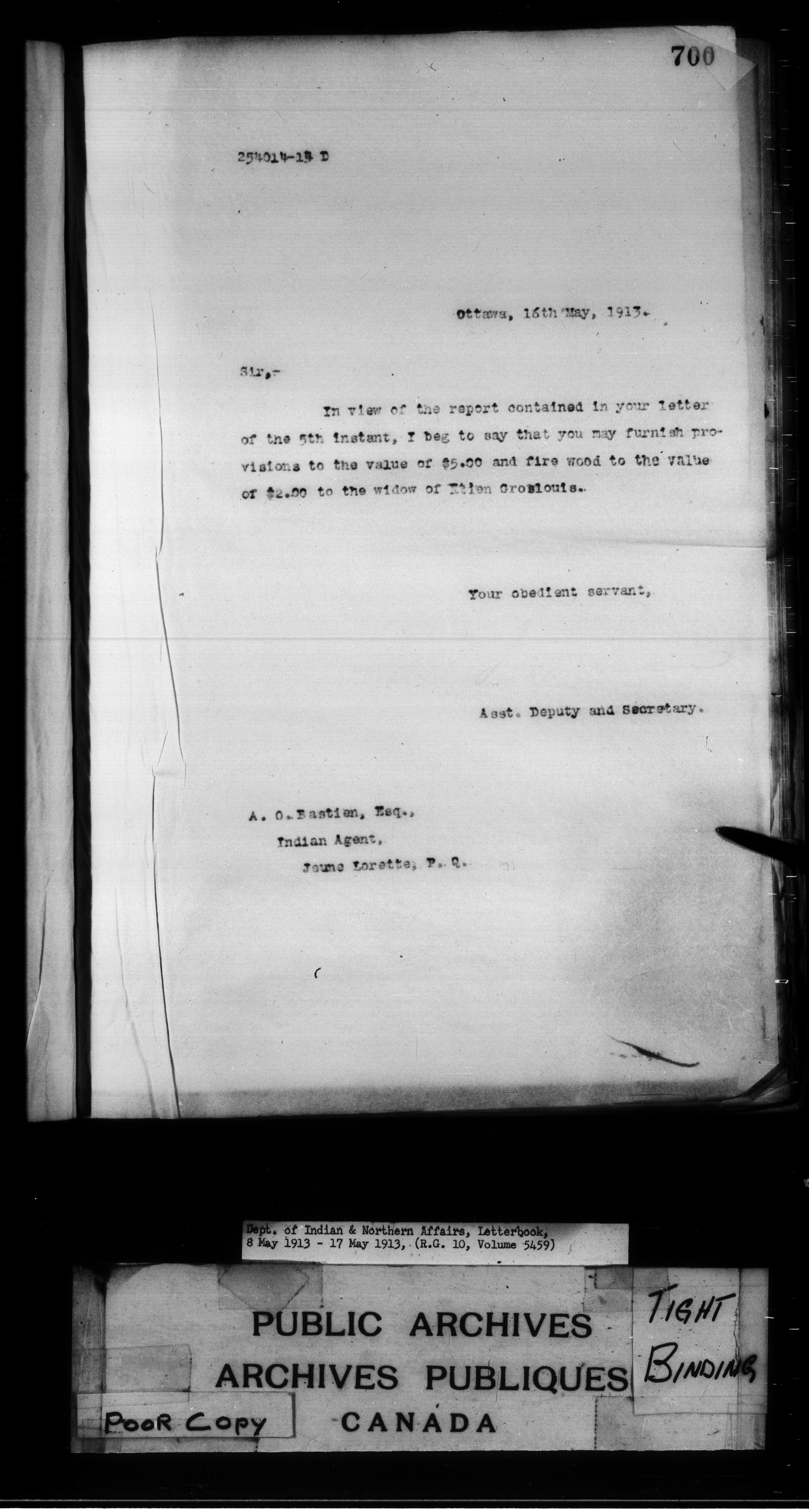 Department of Indian Affairs : Letterbooks of out-going correspondence relating to the administration of Indian Affairs in both eastern and western Canada, 1871-1920 - 8860