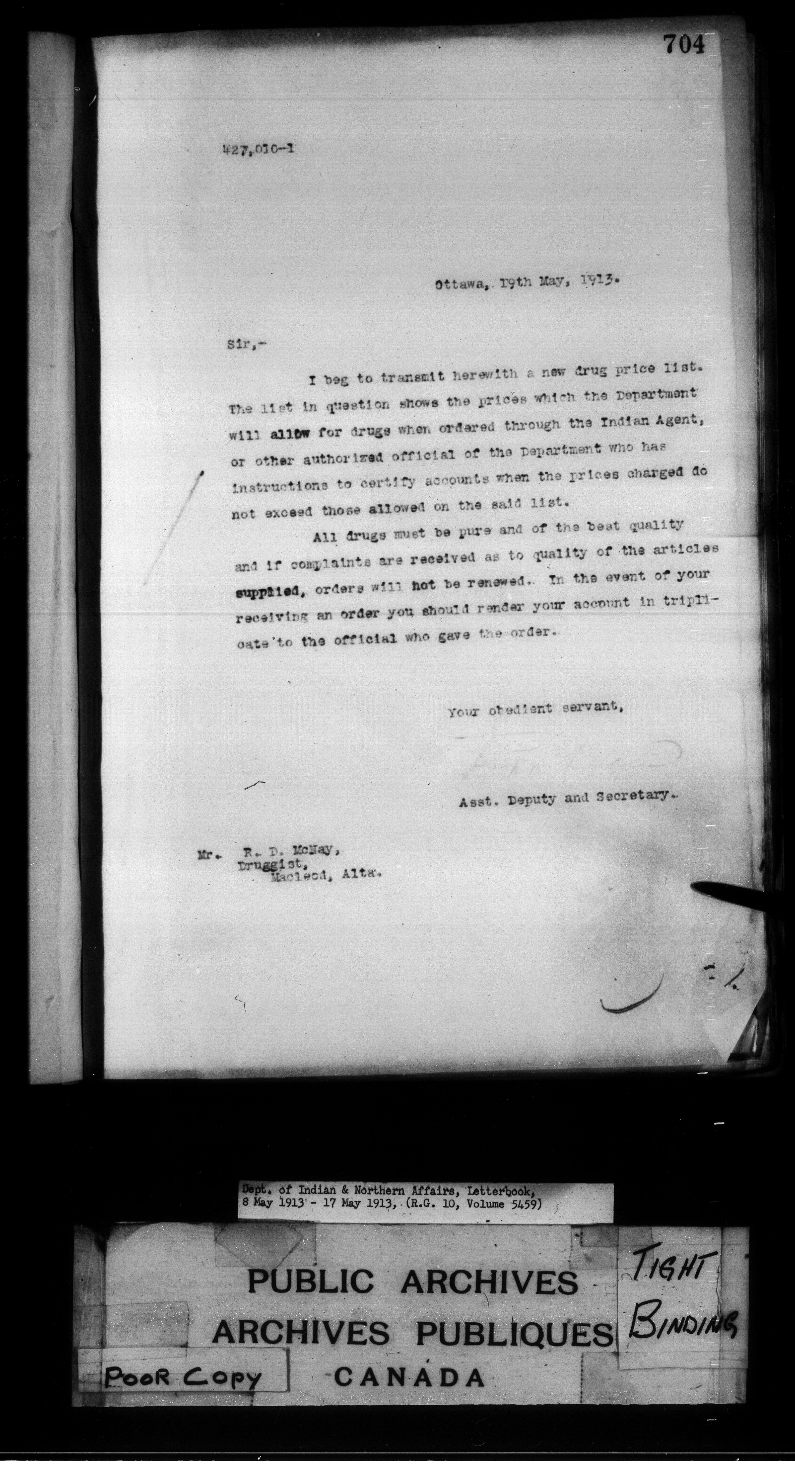 Department of Indian Affairs : Letterbooks of out-going correspondence relating to the administration of Indian Affairs in both eastern and western Canada, 1871-1920 - 8860