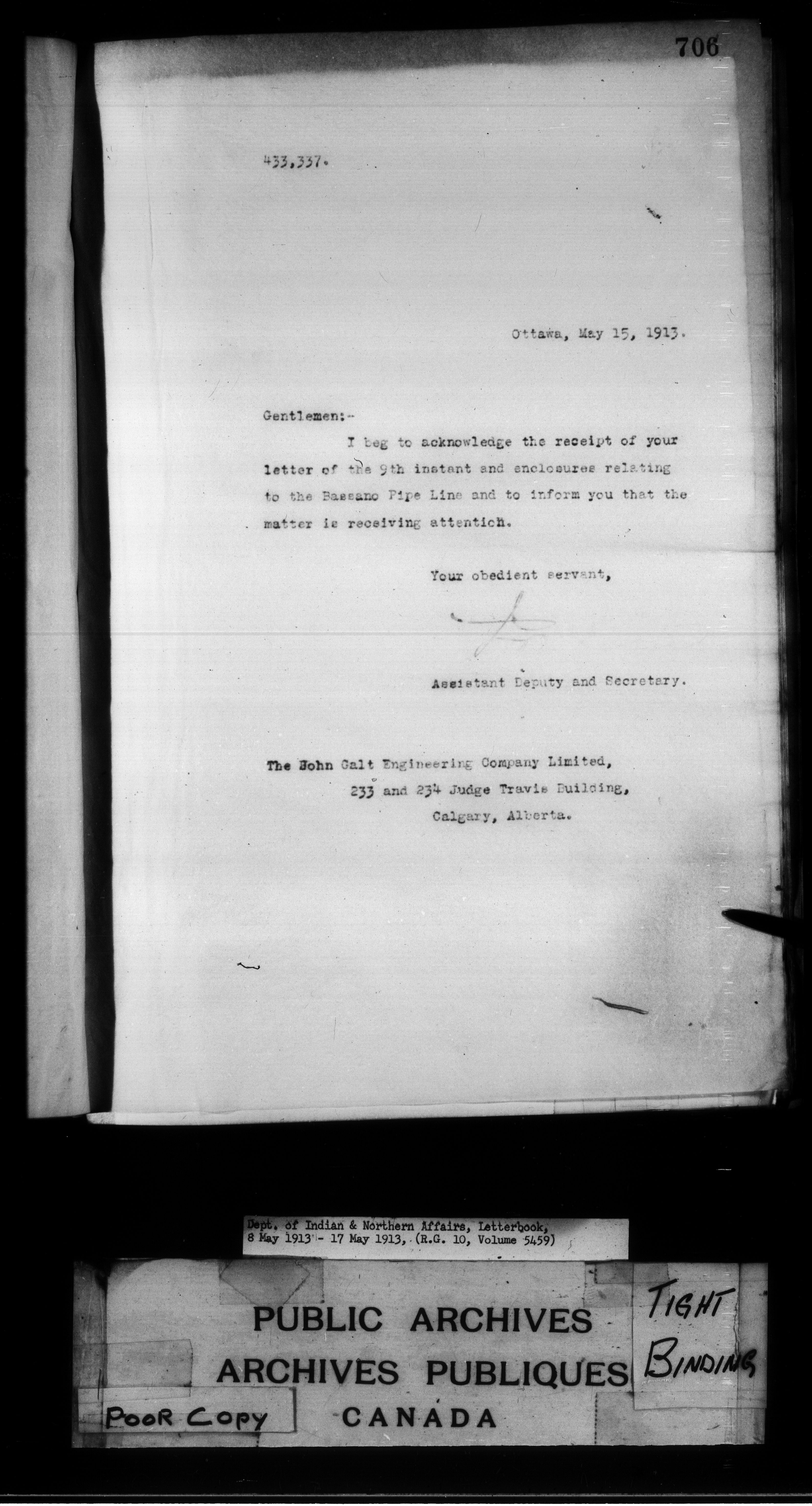 Department of Indian Affairs : Letterbooks of out-going correspondence relating to the administration of Indian Affairs in both eastern and western Canada, 1871-1920 - 8860