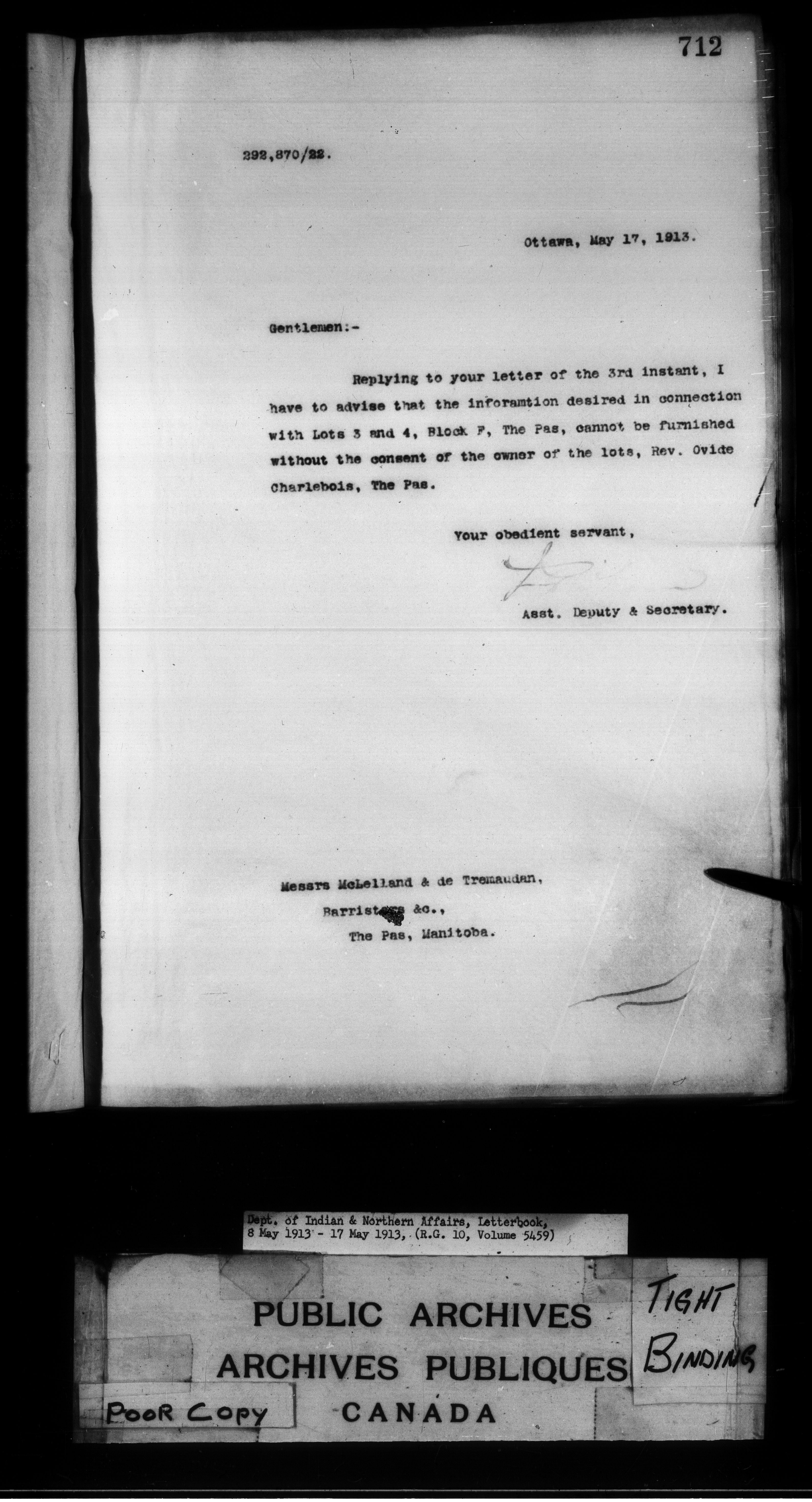 Department of Indian Affairs : Departmental letterbooks : C-8860