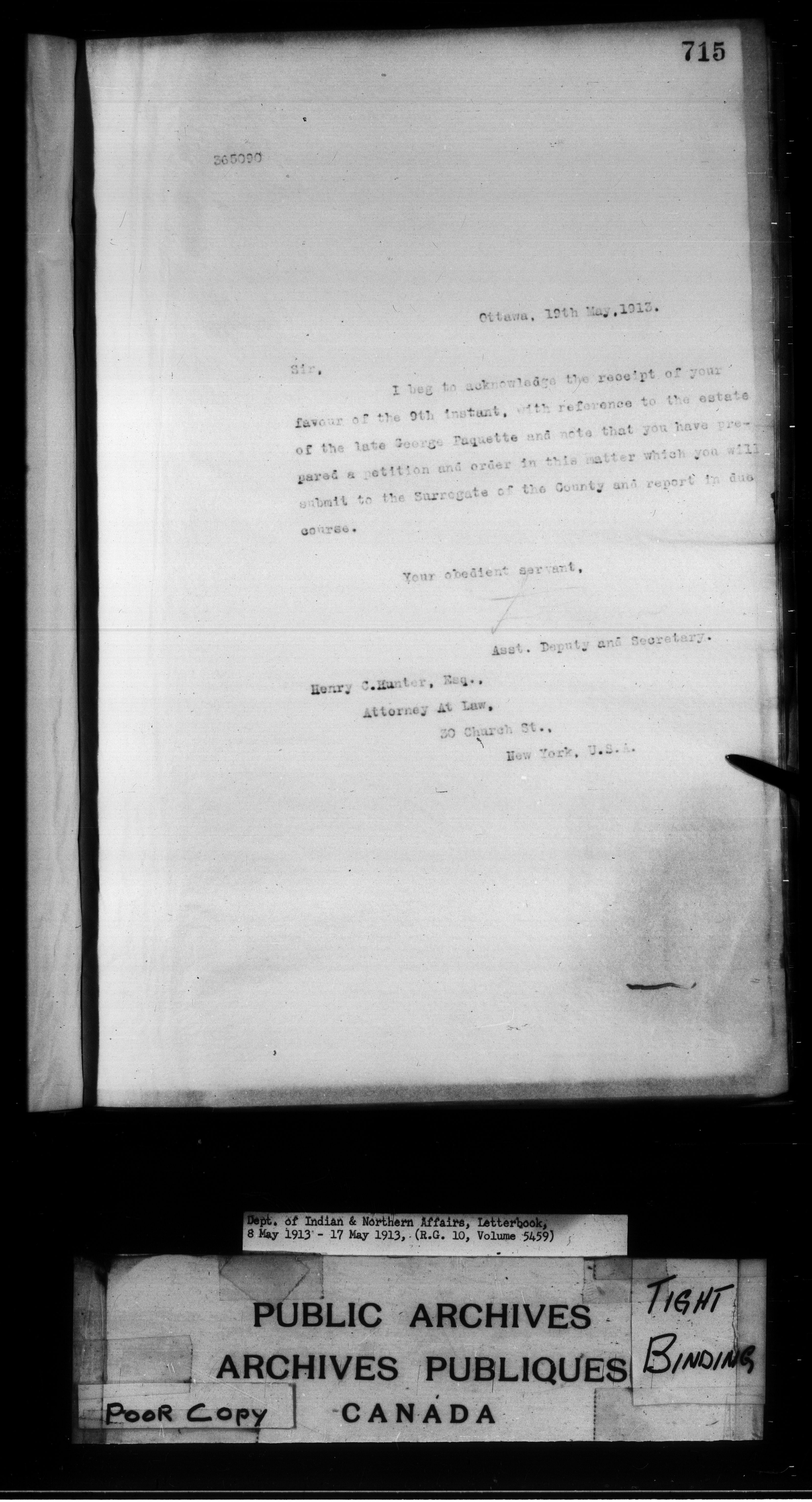 Department of Indian Affairs : Letterbooks of out-going correspondence relating to the administration of Indian Affairs in both eastern and western Canada, 1871-1920 - 8860