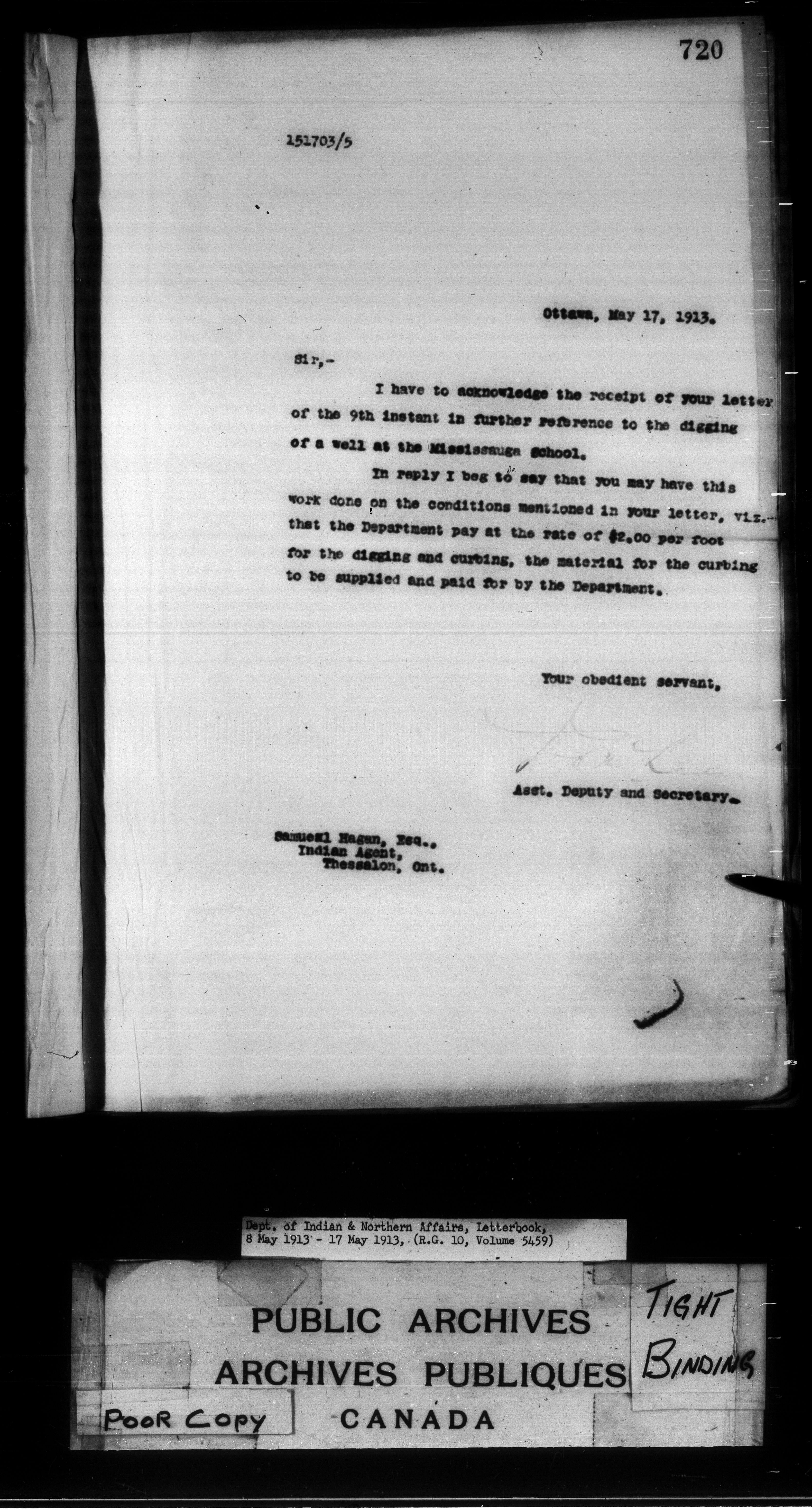 Department of Indian Affairs : Letterbooks of out-going correspondence relating to the administration of Indian Affairs in both eastern and western Canada, 1871-1920 - 8860