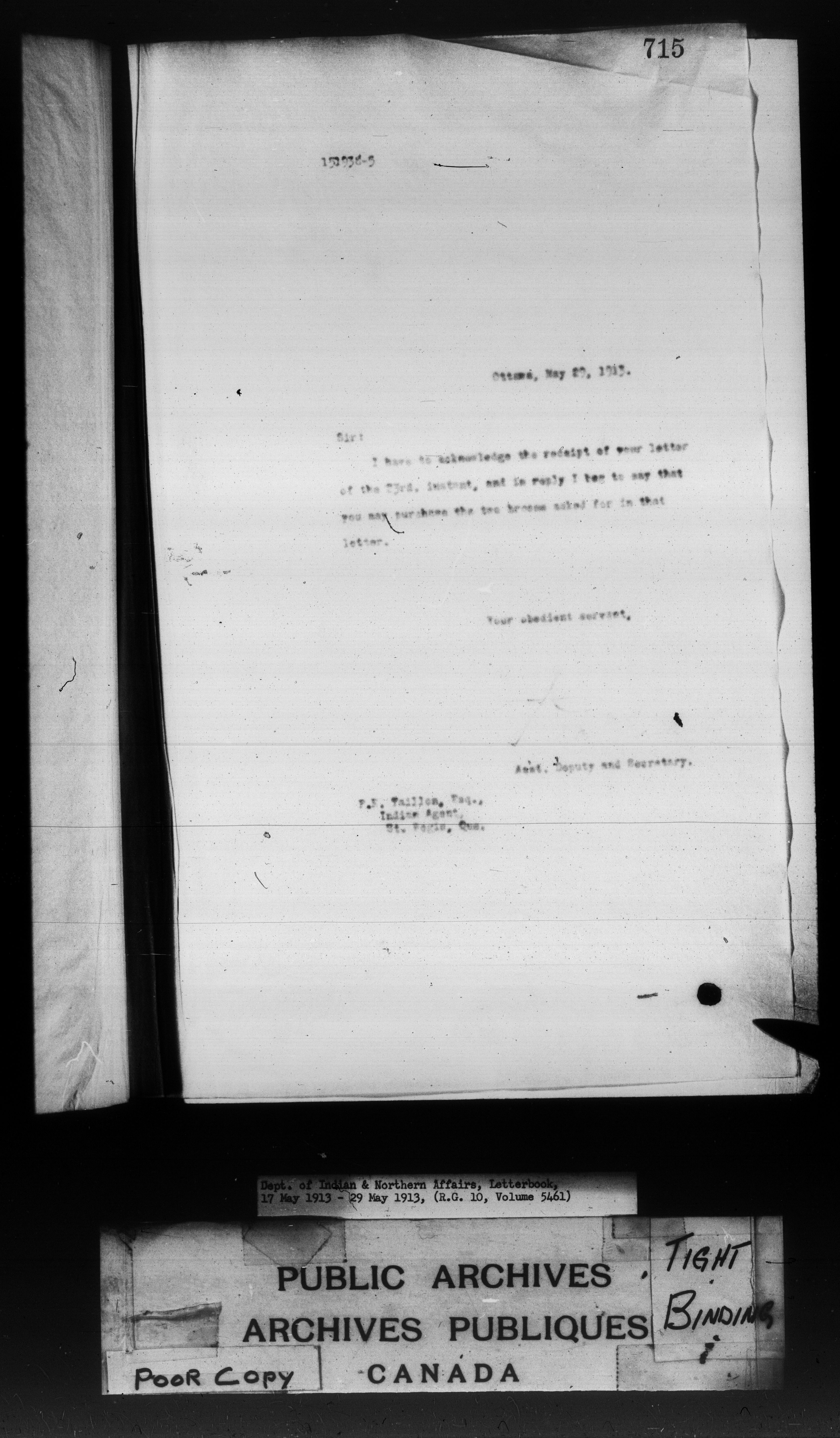 Department of Indian Affairs : Letterbooks of out-going correspondence relating to the administration of Indian Affairs in both eastern and western Canada, 1871-1920 - 8862