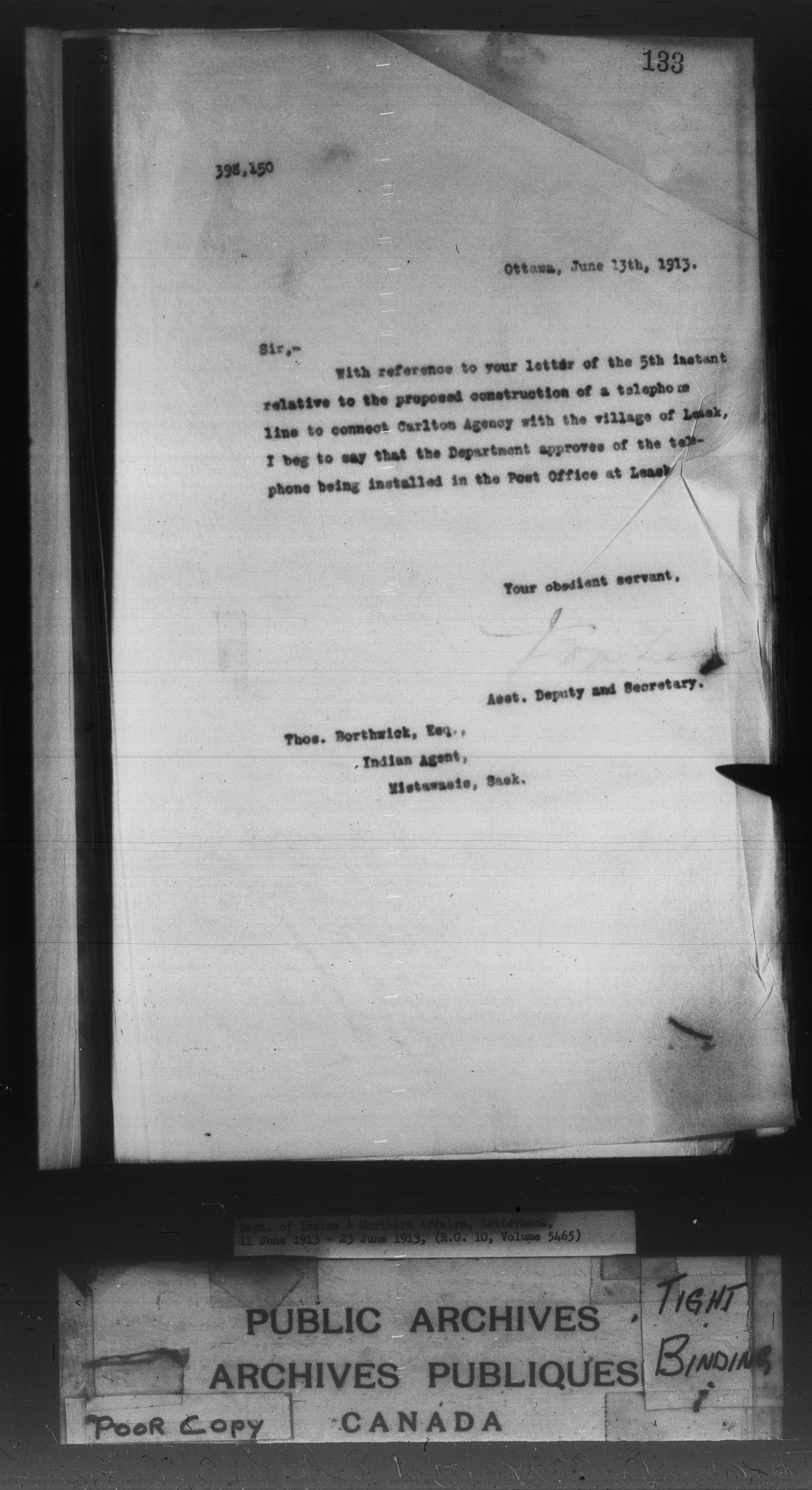 Department of Indian Affairs : Letterbooks of out-going correspondence relating to the administration of Indian Affairs in both eastern and western Canada, 1871-1920 - 8862