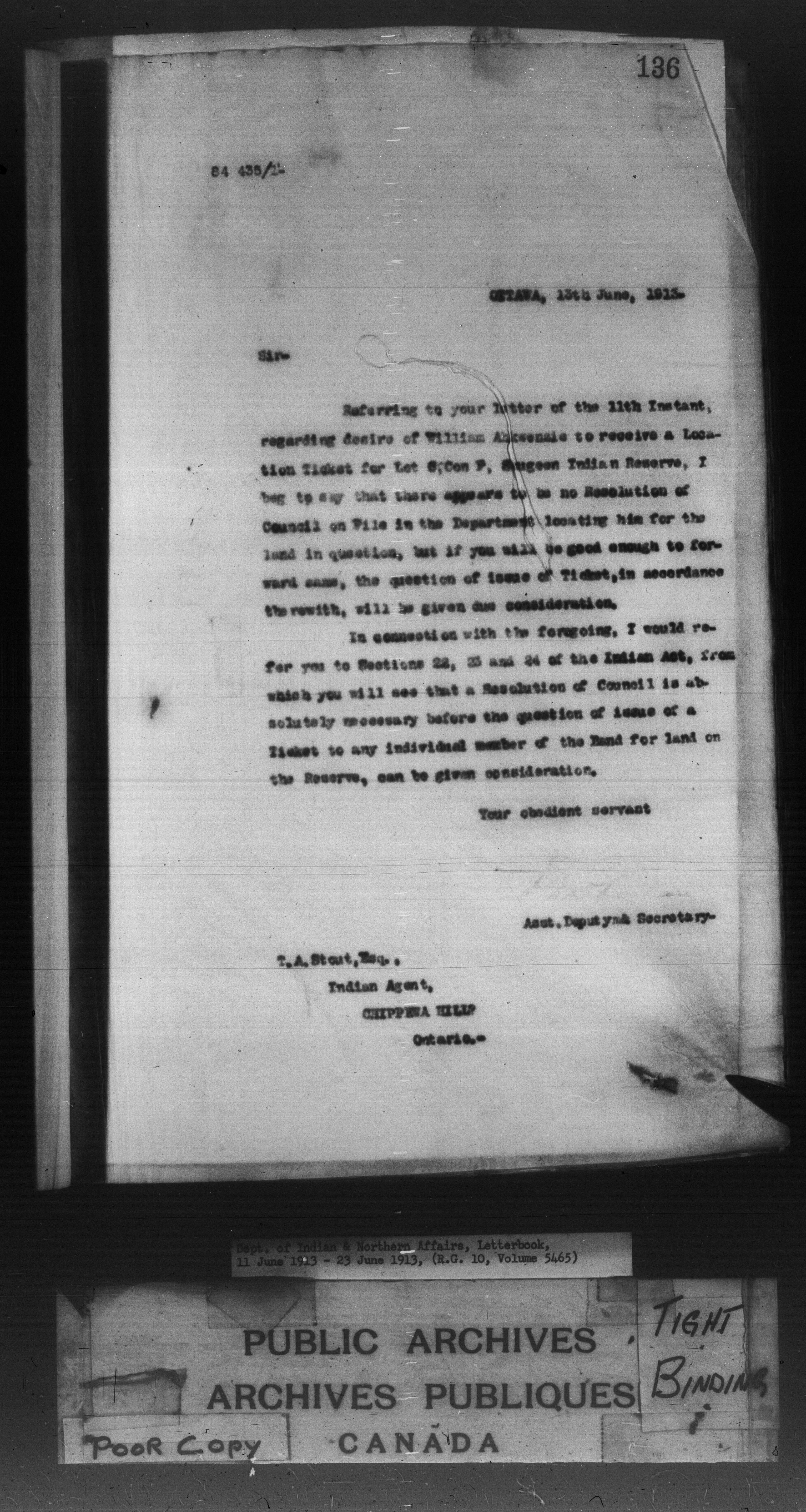 Department of Indian Affairs : Letterbooks of out-going correspondence relating to the administration of Indian Affairs in both eastern and western Canada, 1871-1920 - 8862