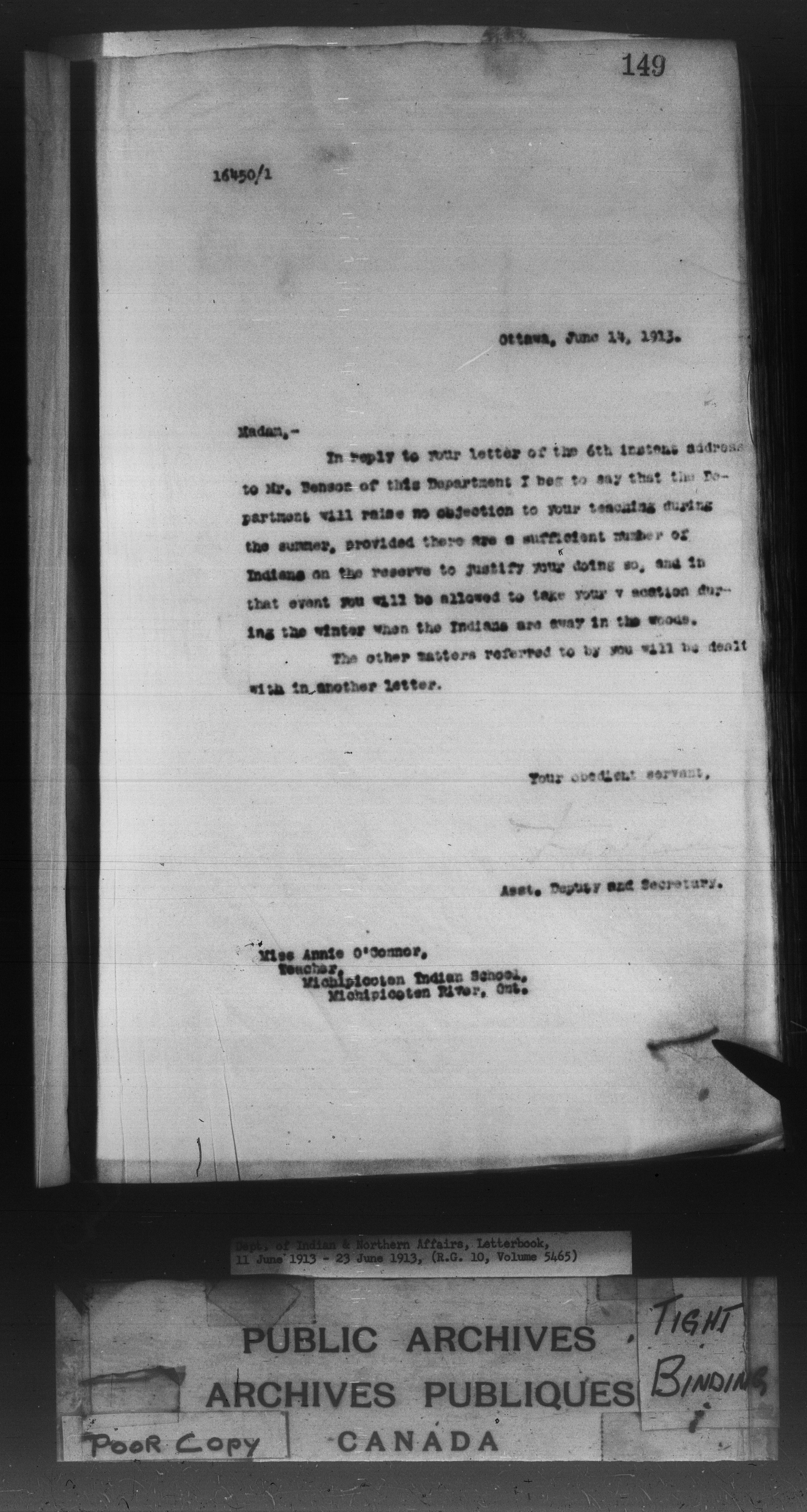 Department of Indian Affairs : Letterbooks of out-going correspondence relating to the administration of Indian Affairs in both eastern and western Canada, 1871-1920 - 8862