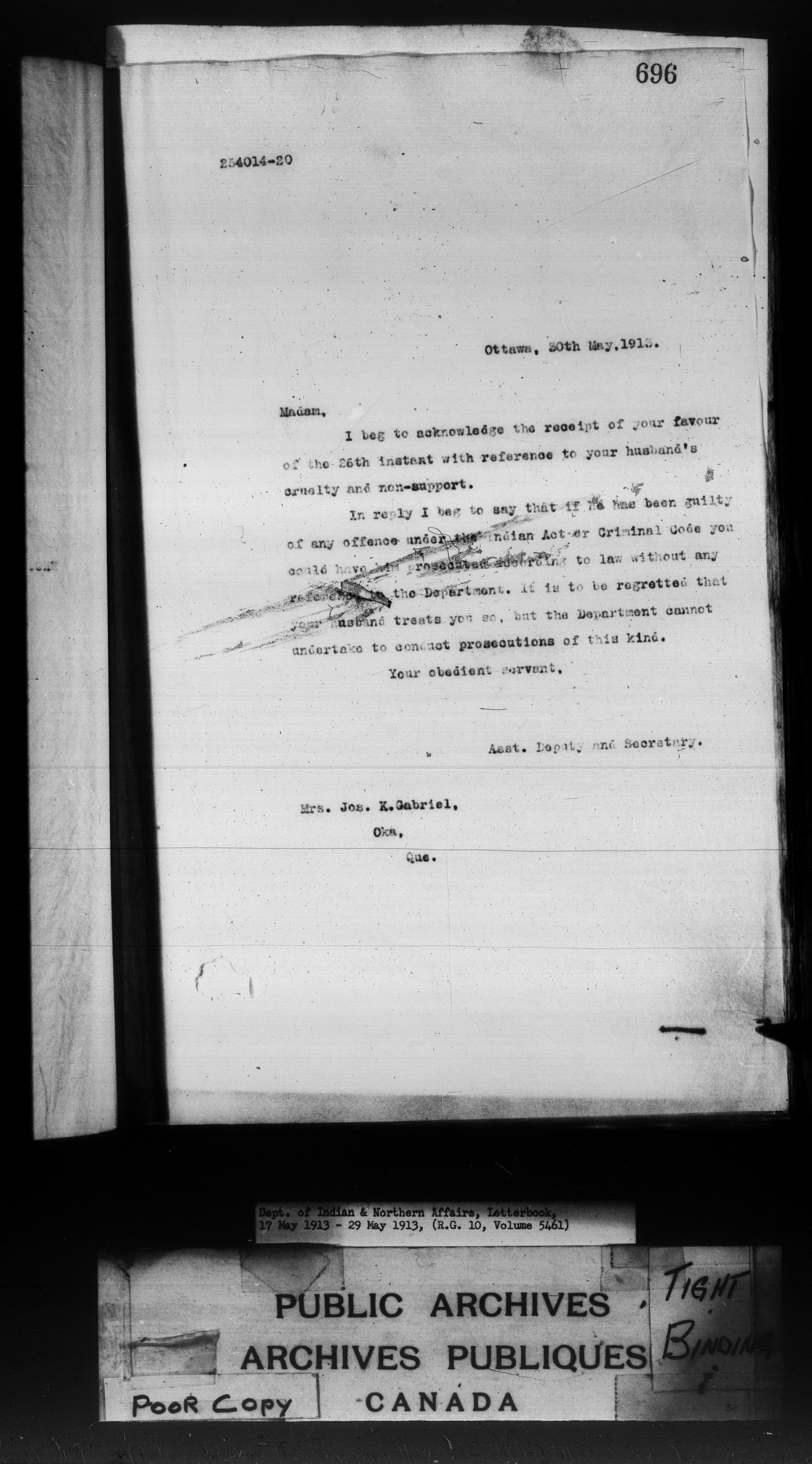 Department of Indian Affairs : Letterbooks of out-going correspondence relating to the administration of Indian Affairs in both eastern and western Canada, 1871-1920 - 8862