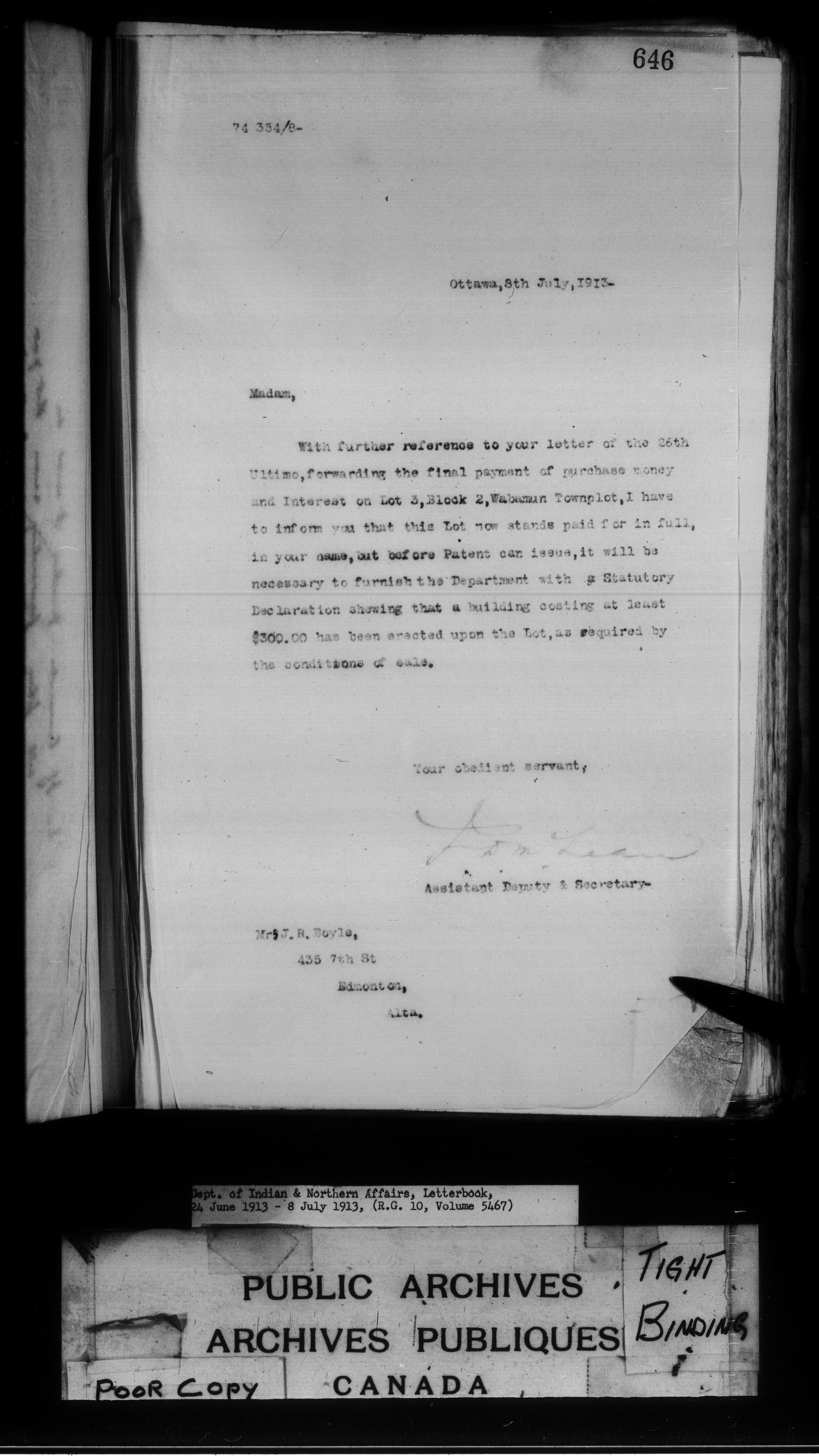 Department of Indian Affairs : Letterbooks of out-going correspondence relating to the administration of Indian Affairs in both eastern and western Canada, 1871-1920 - 8863