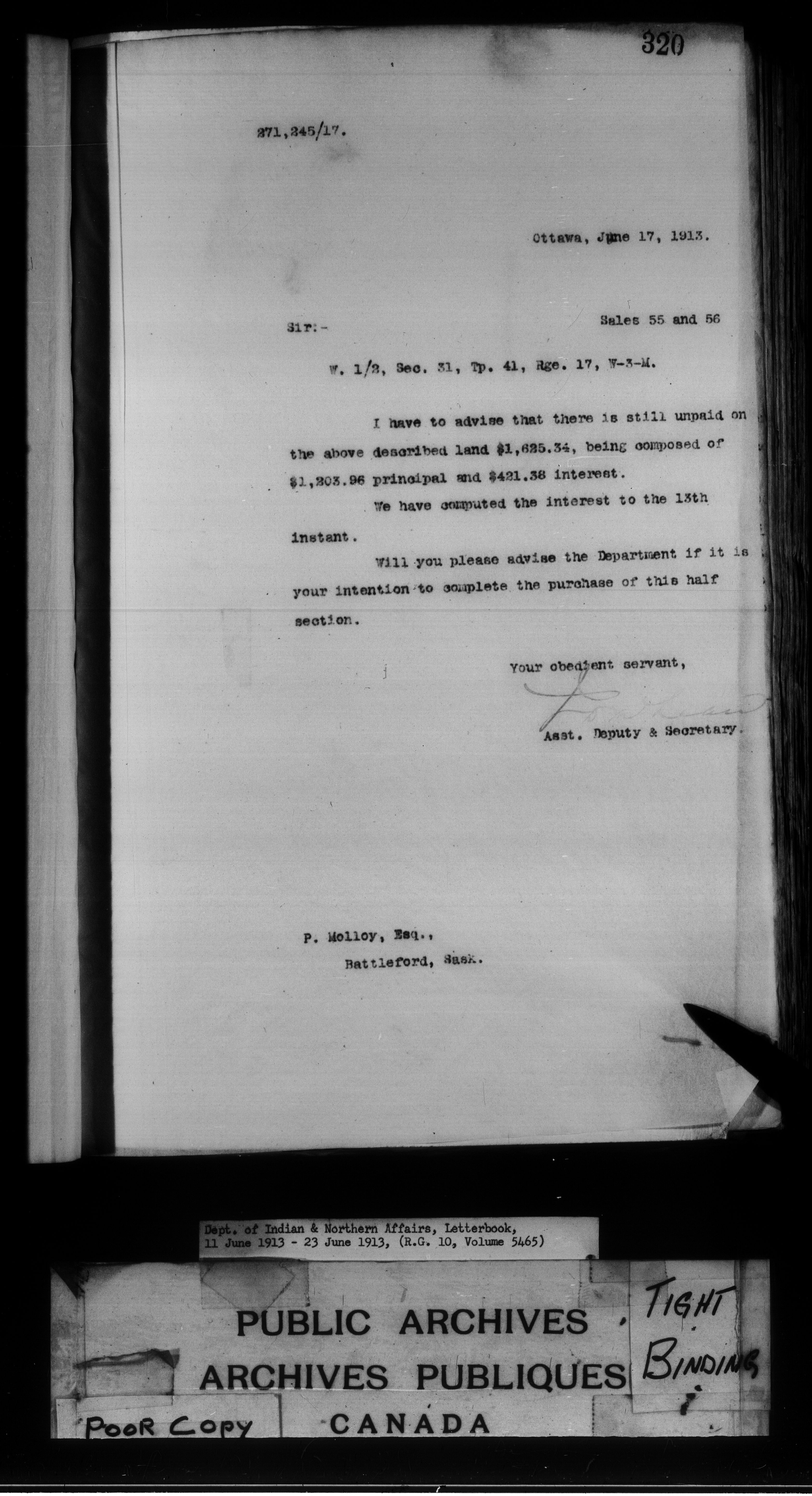 Department of Indian Affairs : Letterbooks of out-going correspondence relating to the administration of Indian Affairs in both eastern and western Canada, 1871-1920 - 8863