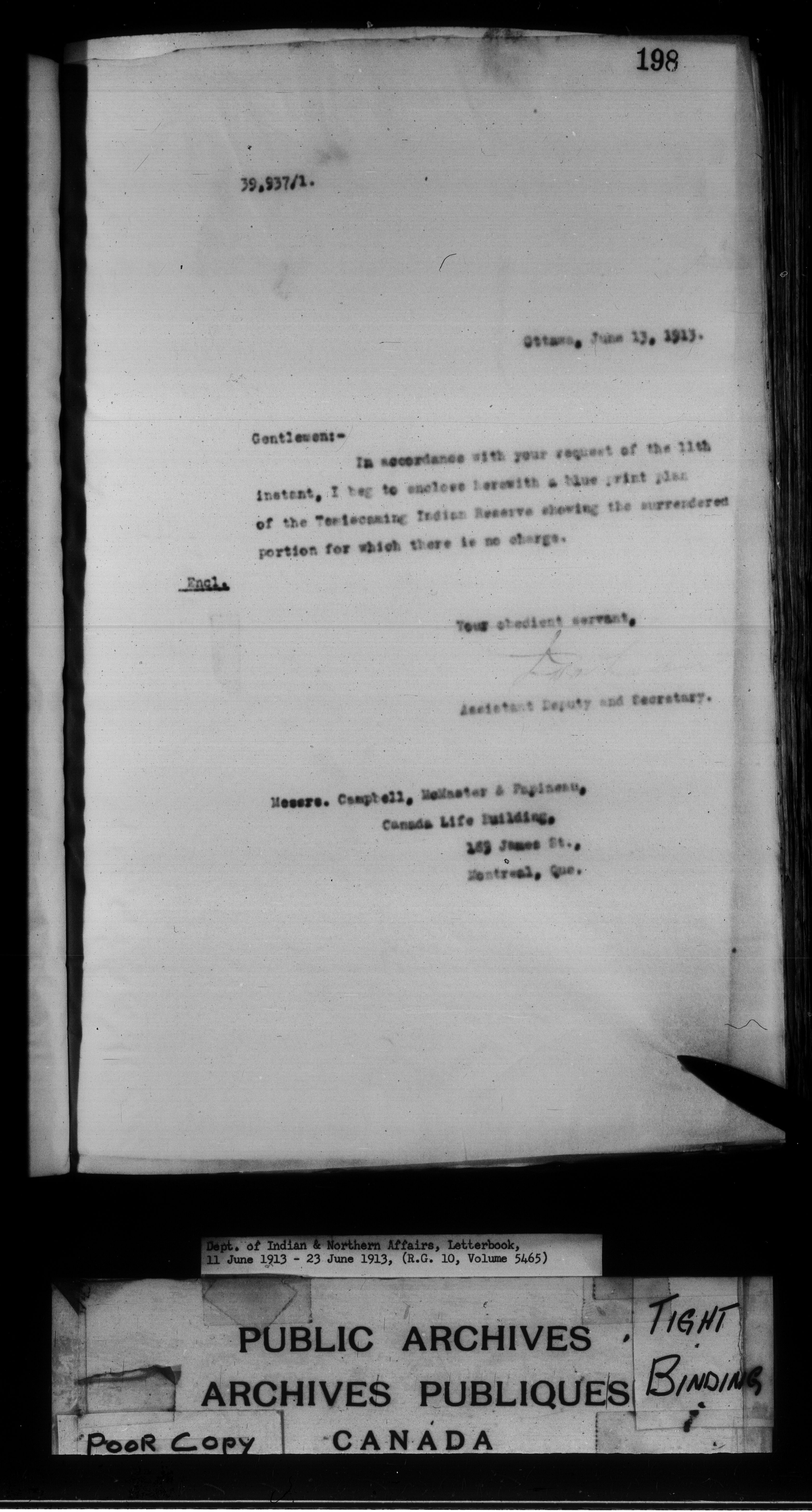 Department of Indian Affairs : Letterbooks of out-going correspondence relating to the administration of Indian Affairs in both eastern and western Canada, 1871-1920 - 8863