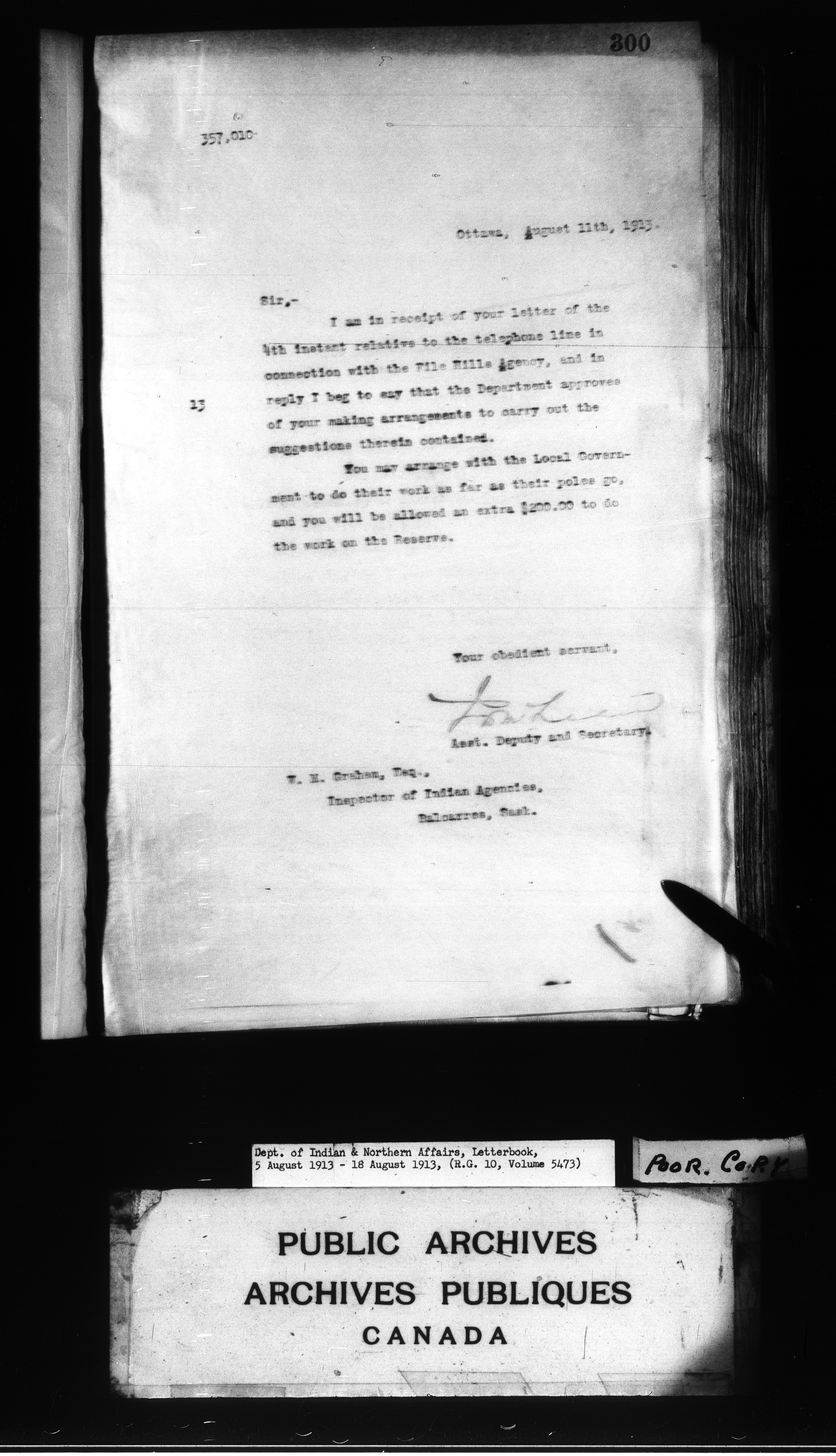 Department of Indian Affairs : Letterbooks of out-going correspondence relating to the administration of Indian Affairs in both eastern and western Canada, 1871-1920 - 8865
