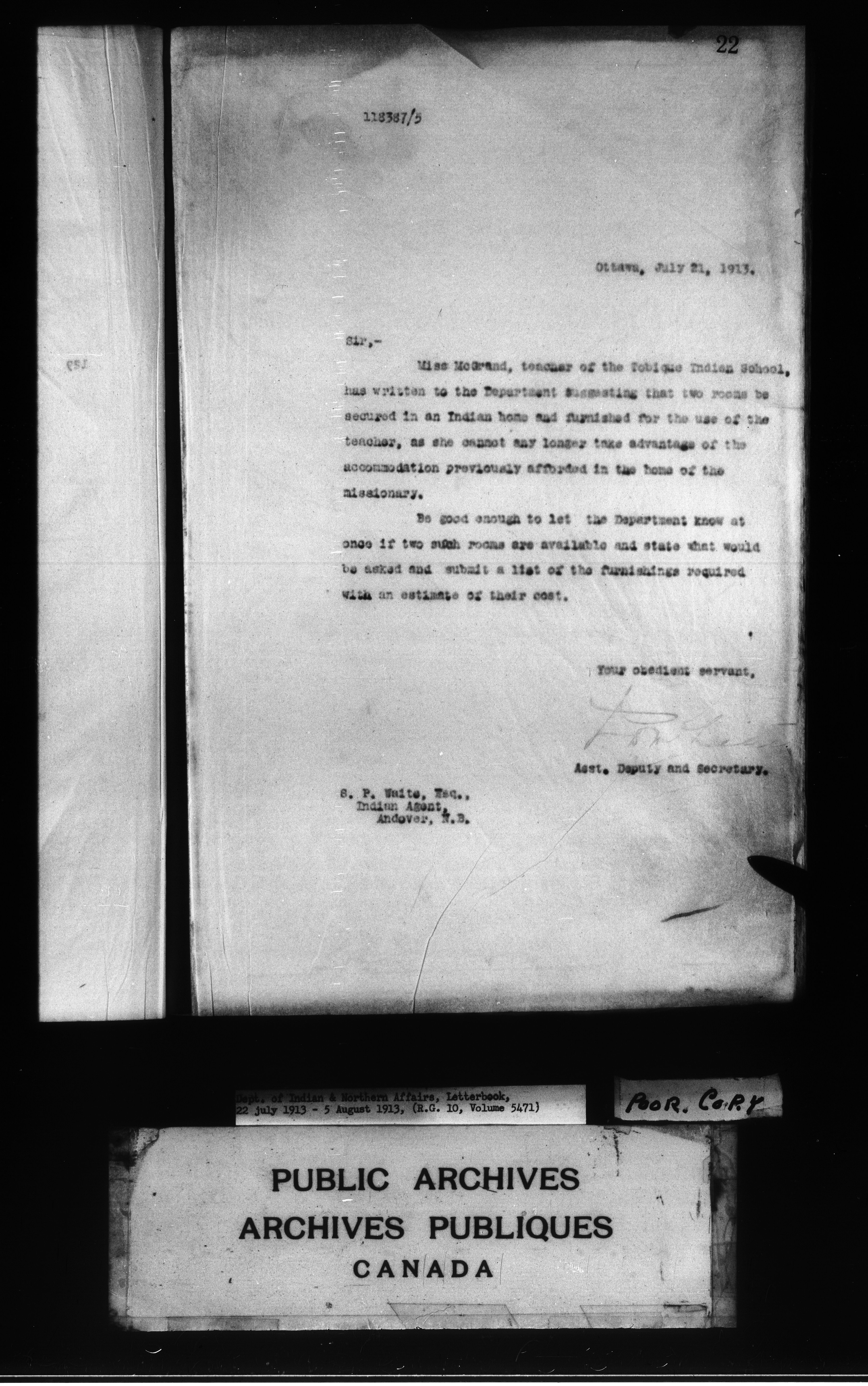 Department of Indian Affairs : Letterbooks of out-going correspondence relating to the administration of Indian Affairs in both eastern and western Canada, 1871-1920 - 8865