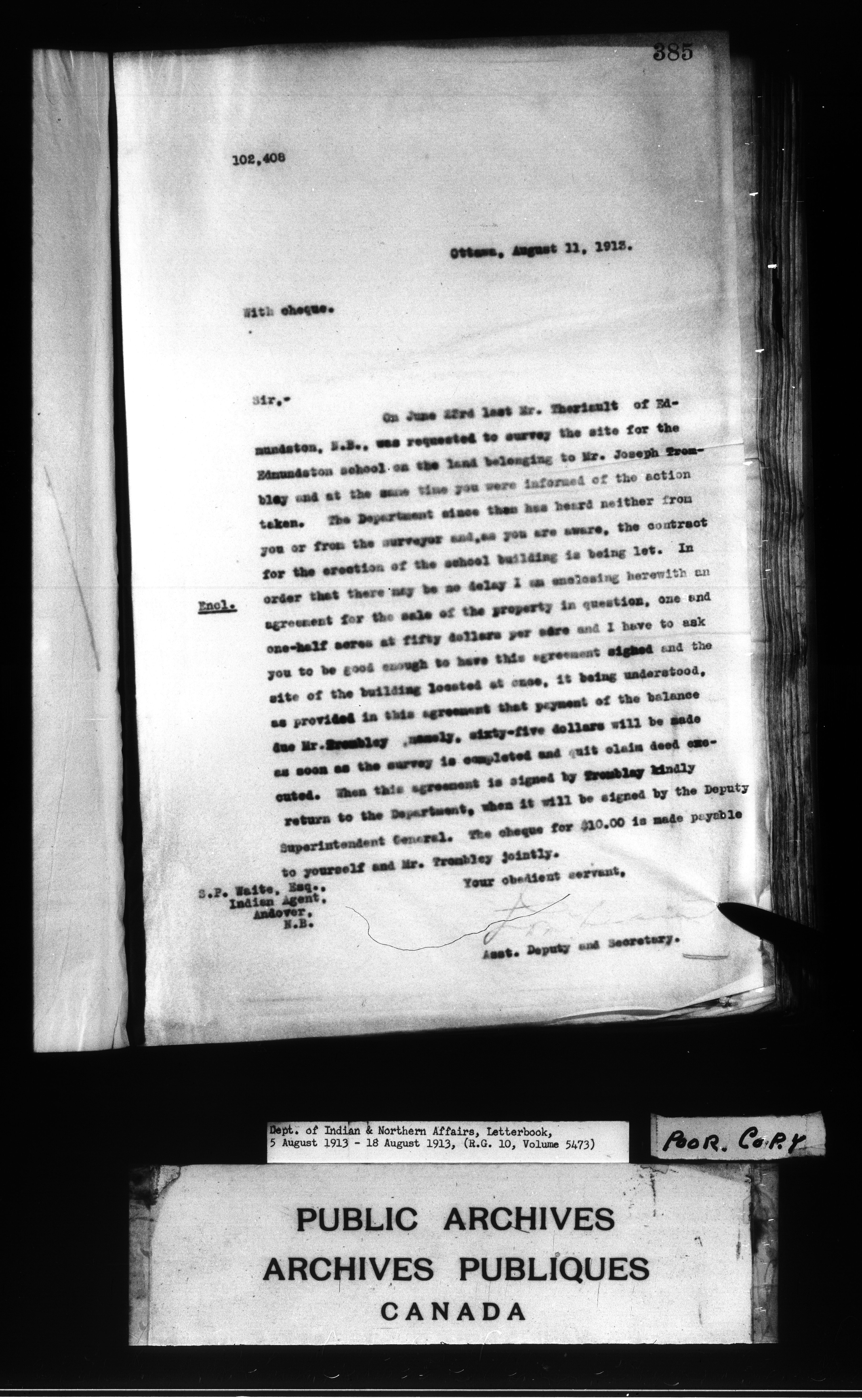 Department of Indian Affairs : Letterbooks of out-going correspondence relating to the administration of Indian Affairs in both eastern and western Canada, 1871-1920 - 8866