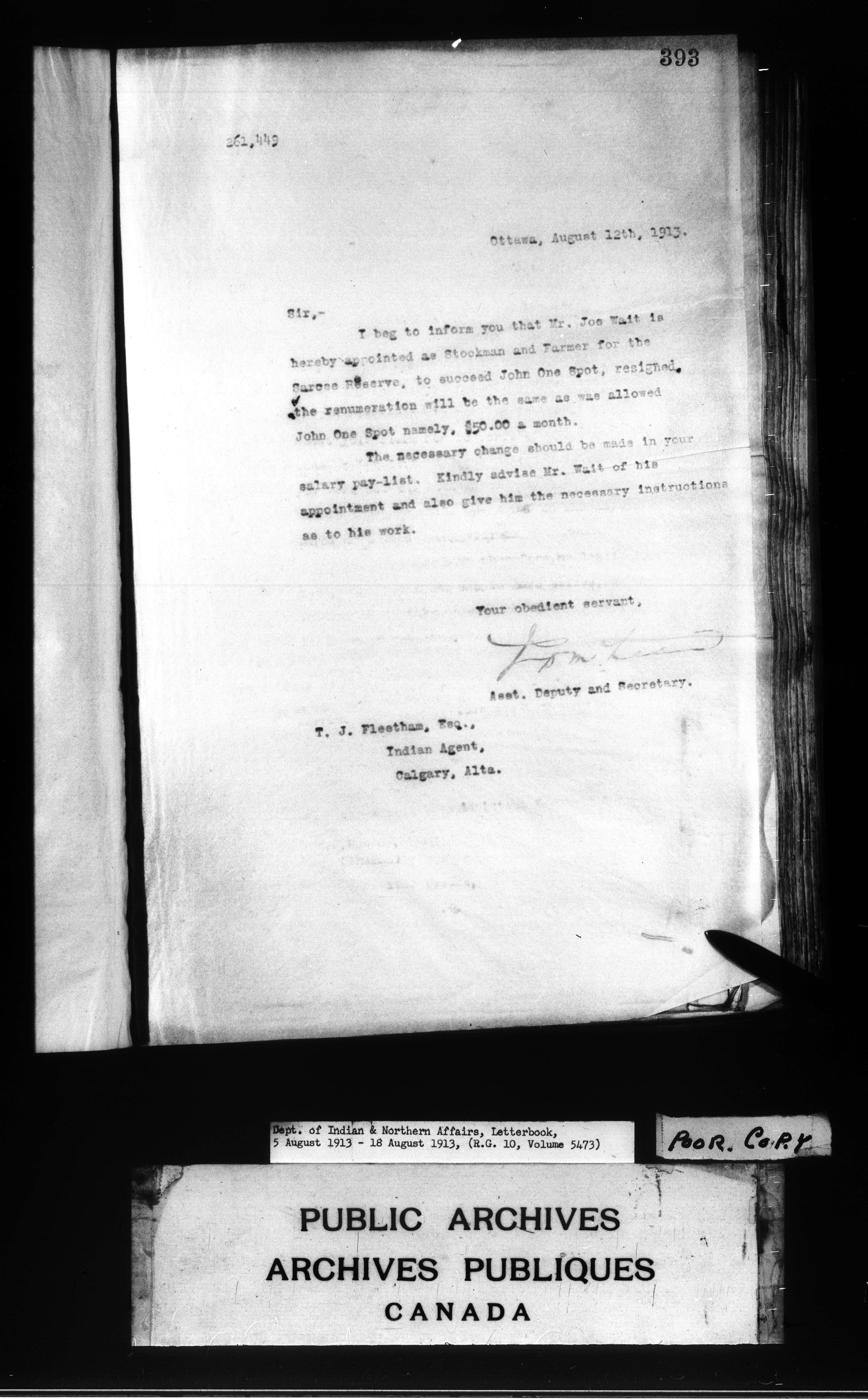Department of Indian Affairs : Letterbooks of out-going correspondence relating to the administration of Indian Affairs in both eastern and western Canada, 1871-1920 - 8866