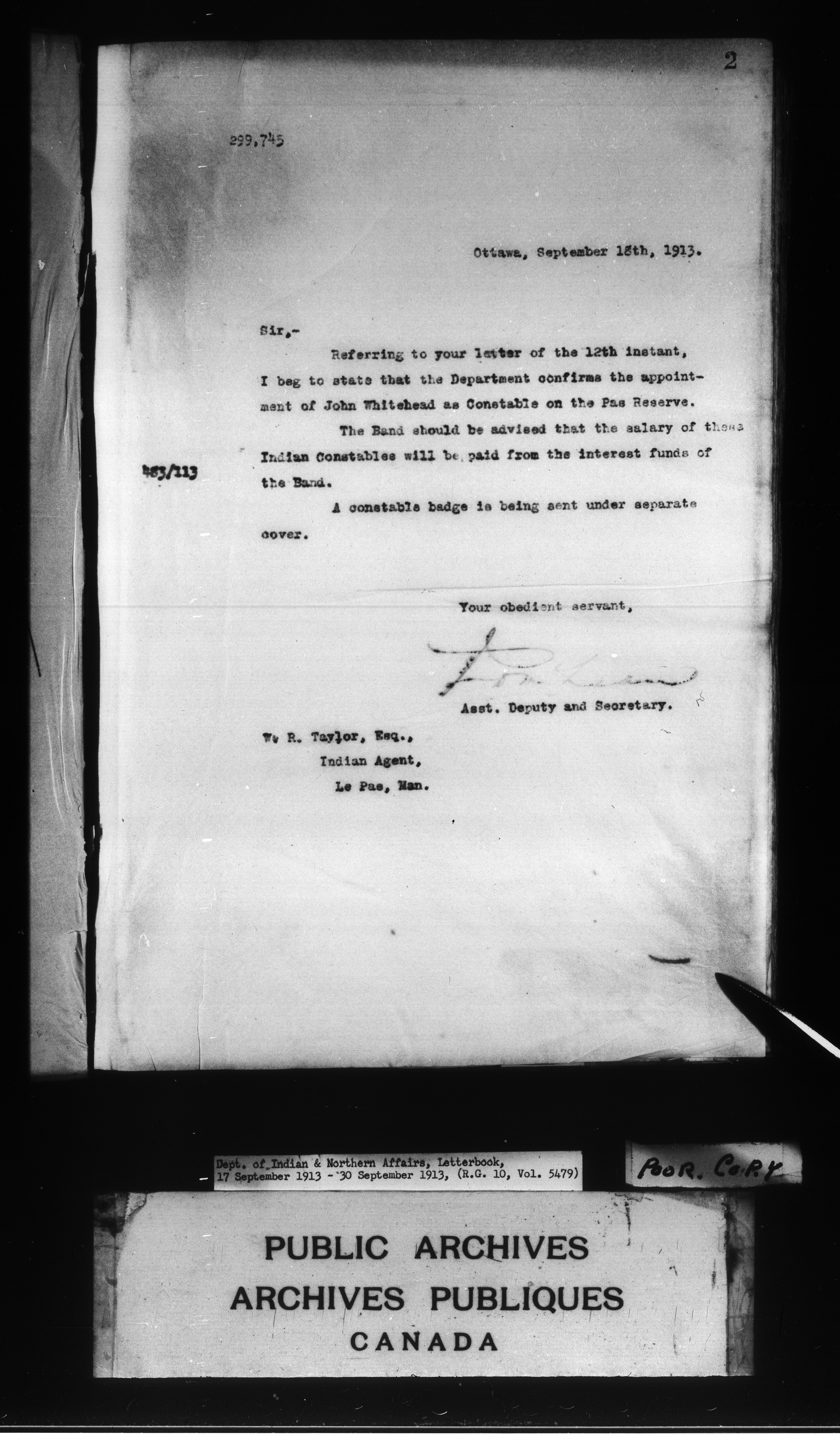 Department of Indian Affairs : Letterbooks of out-going correspondence relating to the administration of Indian Affairs in both eastern and western Canada, 1871-1920 - 8867