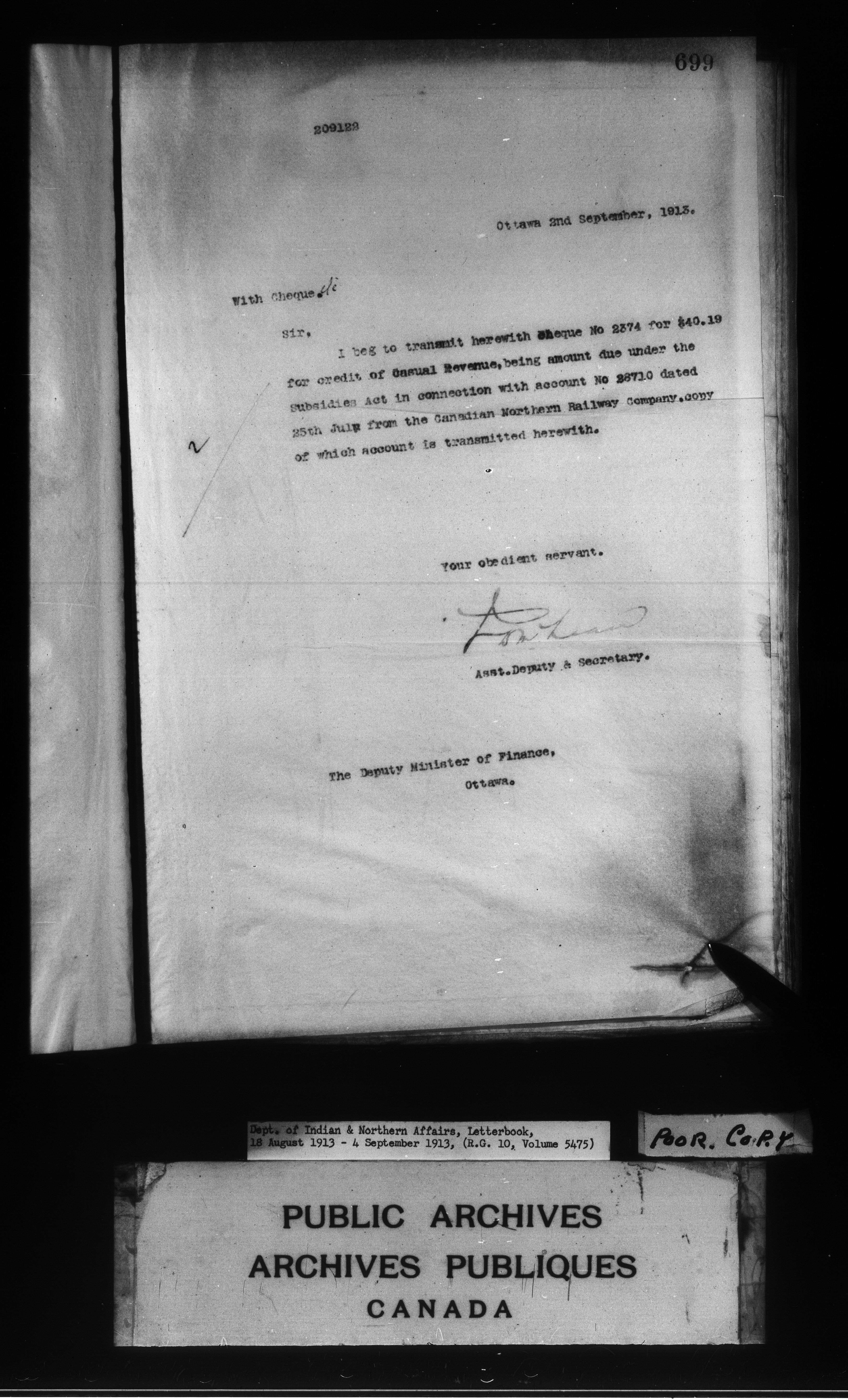 Department of Indian Affairs : Letterbooks of out-going correspondence relating to the administration of Indian Affairs in both eastern and western Canada, 1871-1920 - 8867