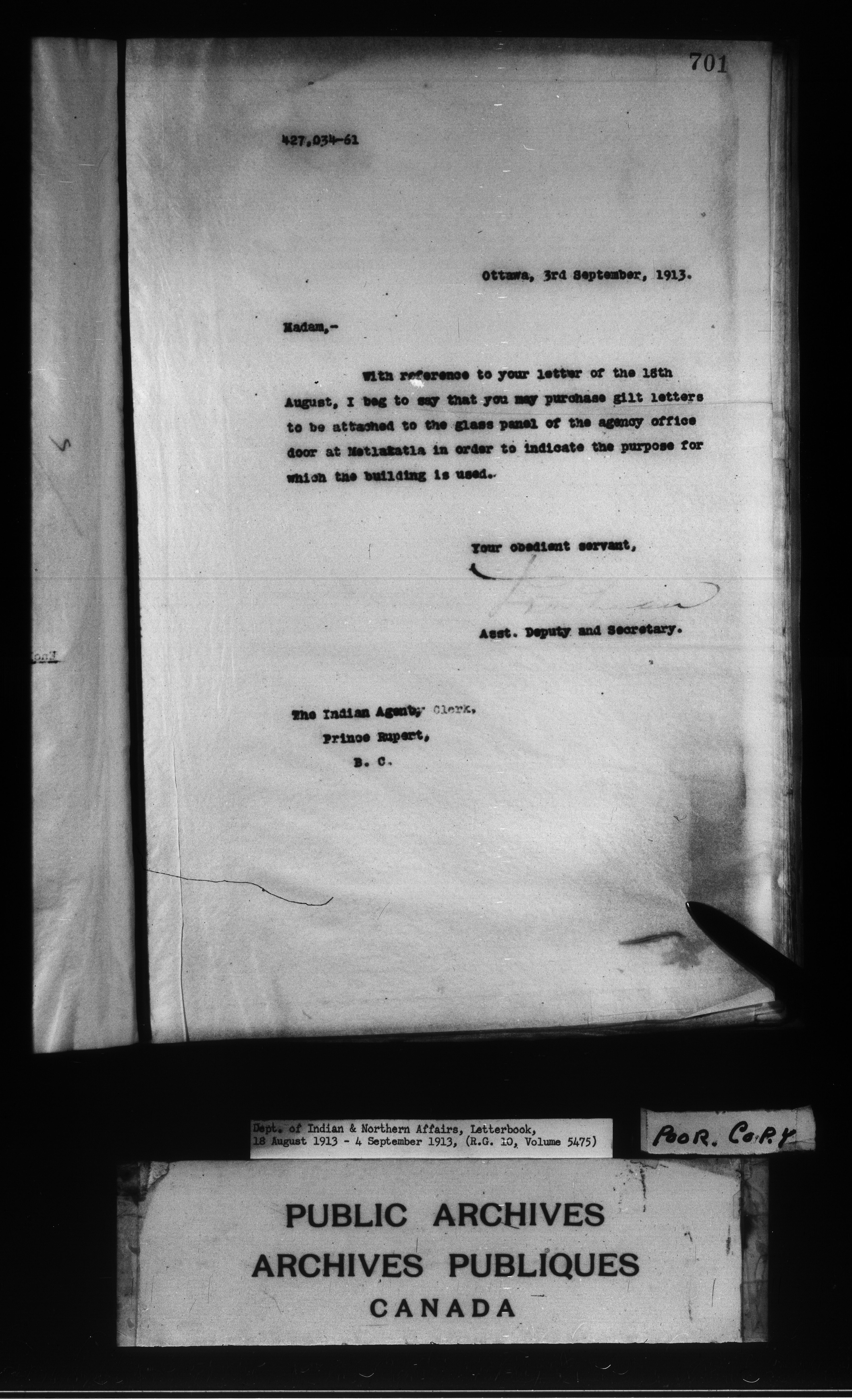 Department of Indian Affairs : Letterbooks of out-going correspondence relating to the administration of Indian Affairs in both eastern and western Canada, 1871-1920 - 8867