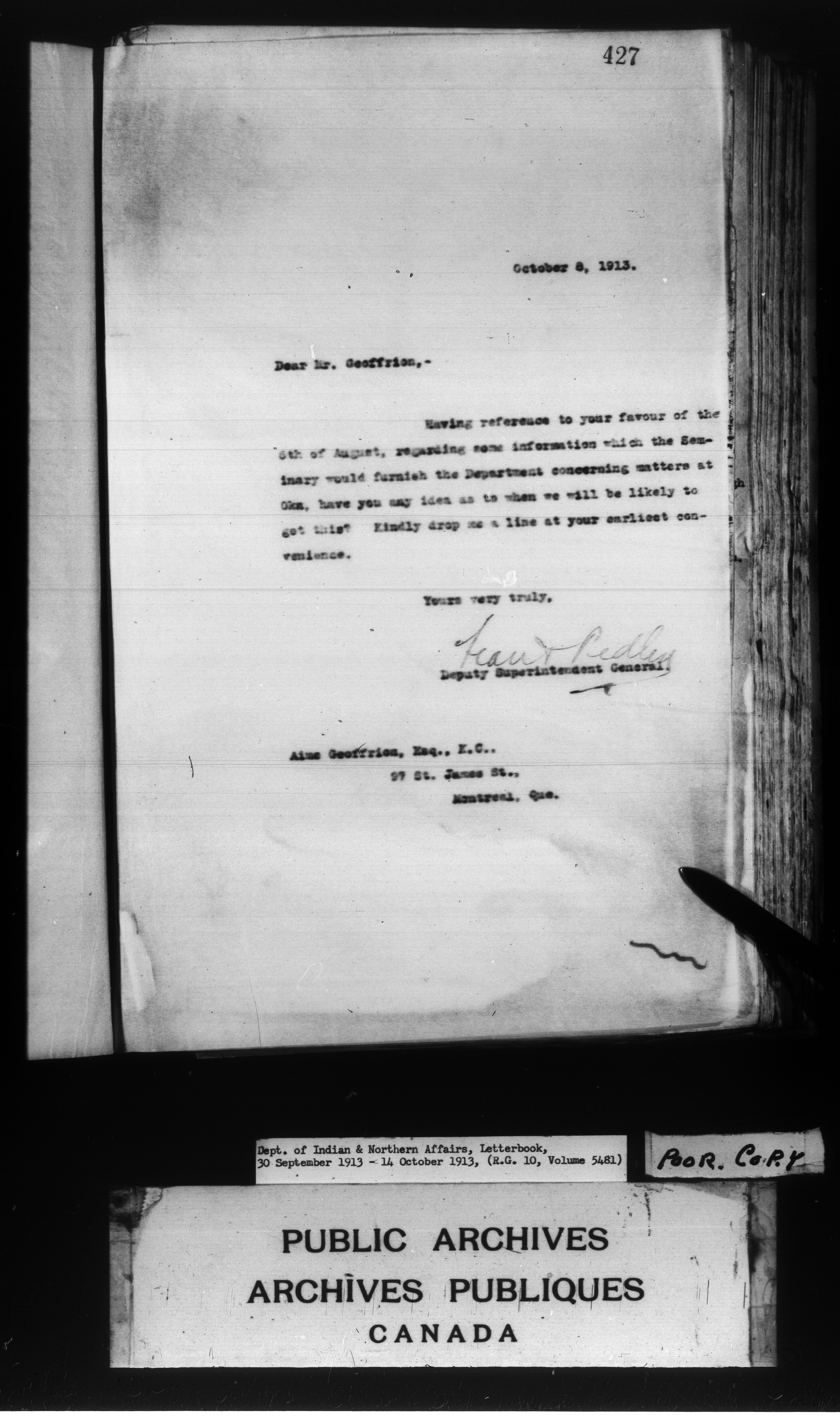 Department of Indian Affairs : Letterbooks of out-going correspondence relating to the administration of Indian Affairs in both eastern and western Canada, 1871-1920 - 8868