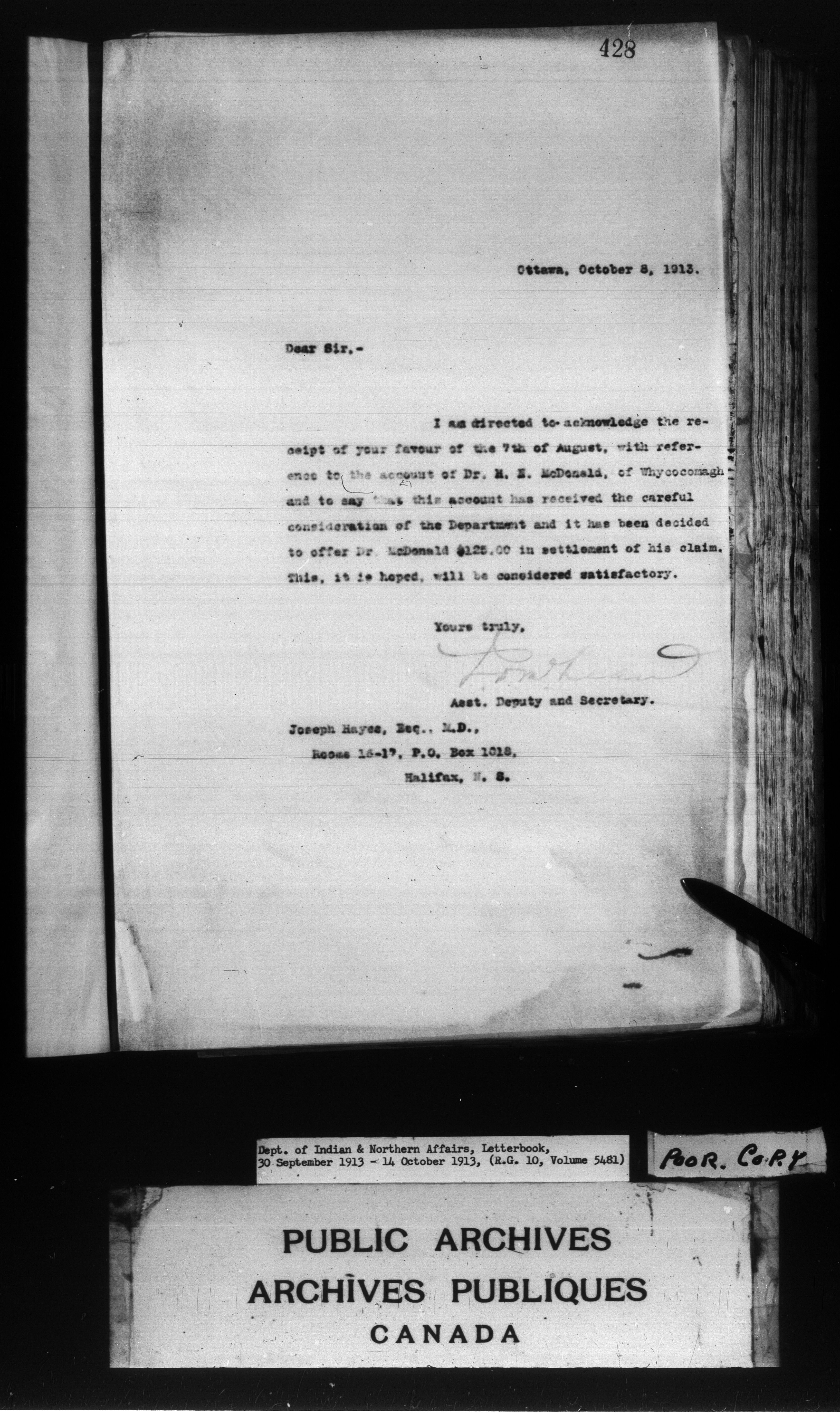 Department of Indian Affairs : Letterbooks of out-going correspondence relating to the administration of Indian Affairs in both eastern and western Canada, 1871-1920 - 8868
