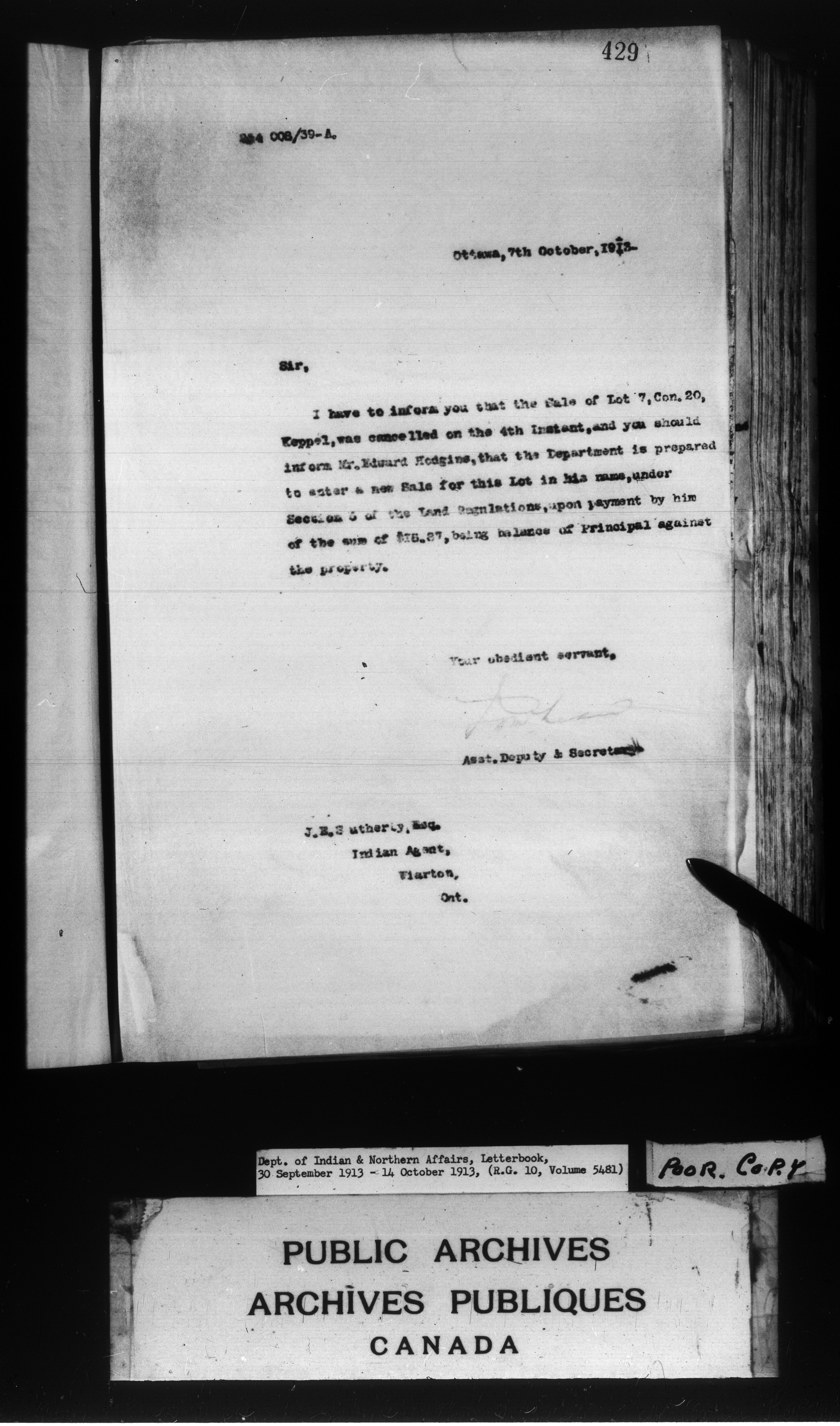 Department of Indian Affairs : Letterbooks of out-going correspondence relating to the administration of Indian Affairs in both eastern and western Canada, 1871-1920 - 8868