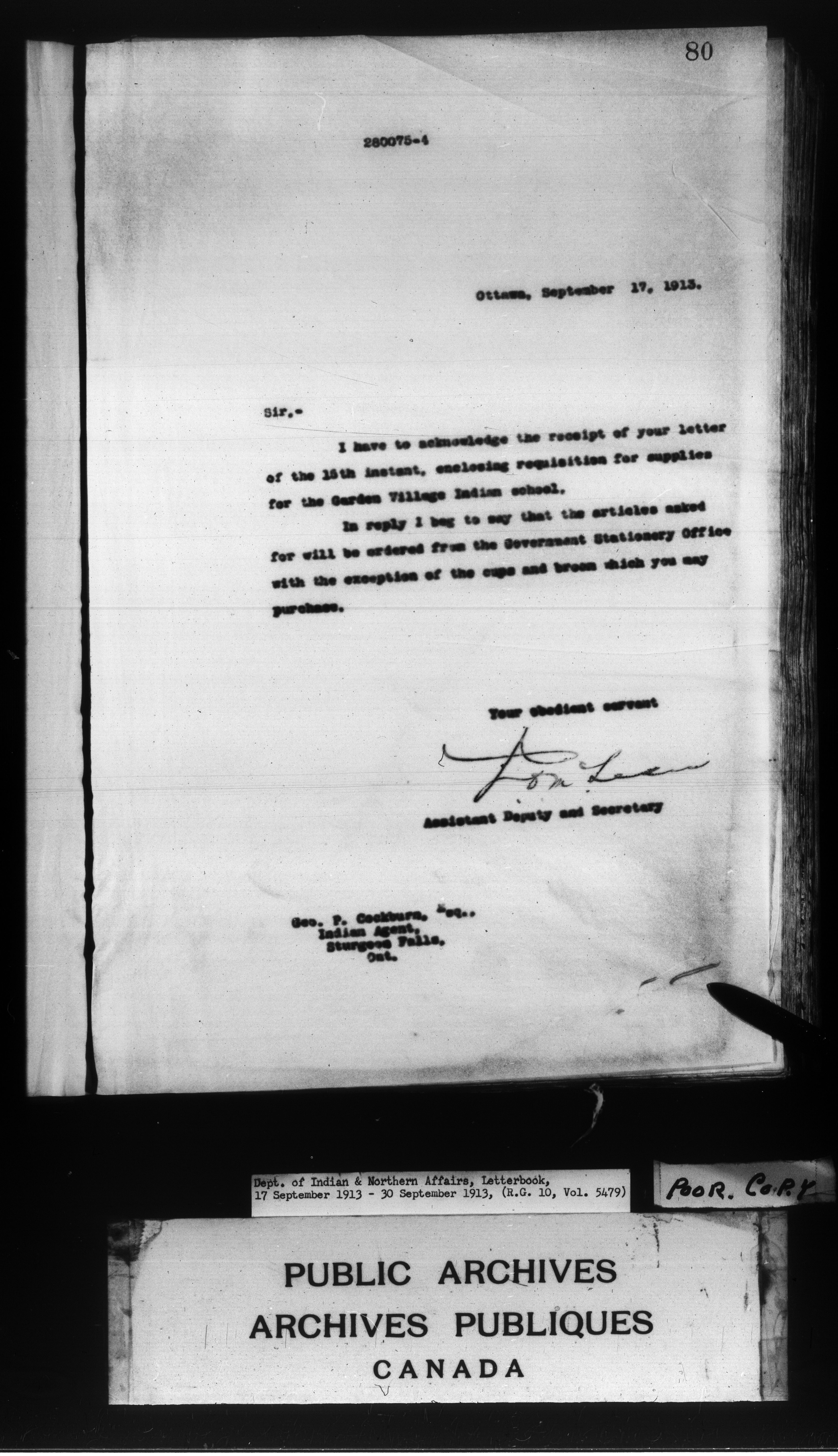 Department of Indian Affairs : Letterbooks of out-going correspondence relating to the administration of Indian Affairs in both eastern and western Canada, 1871-1920 - 8868