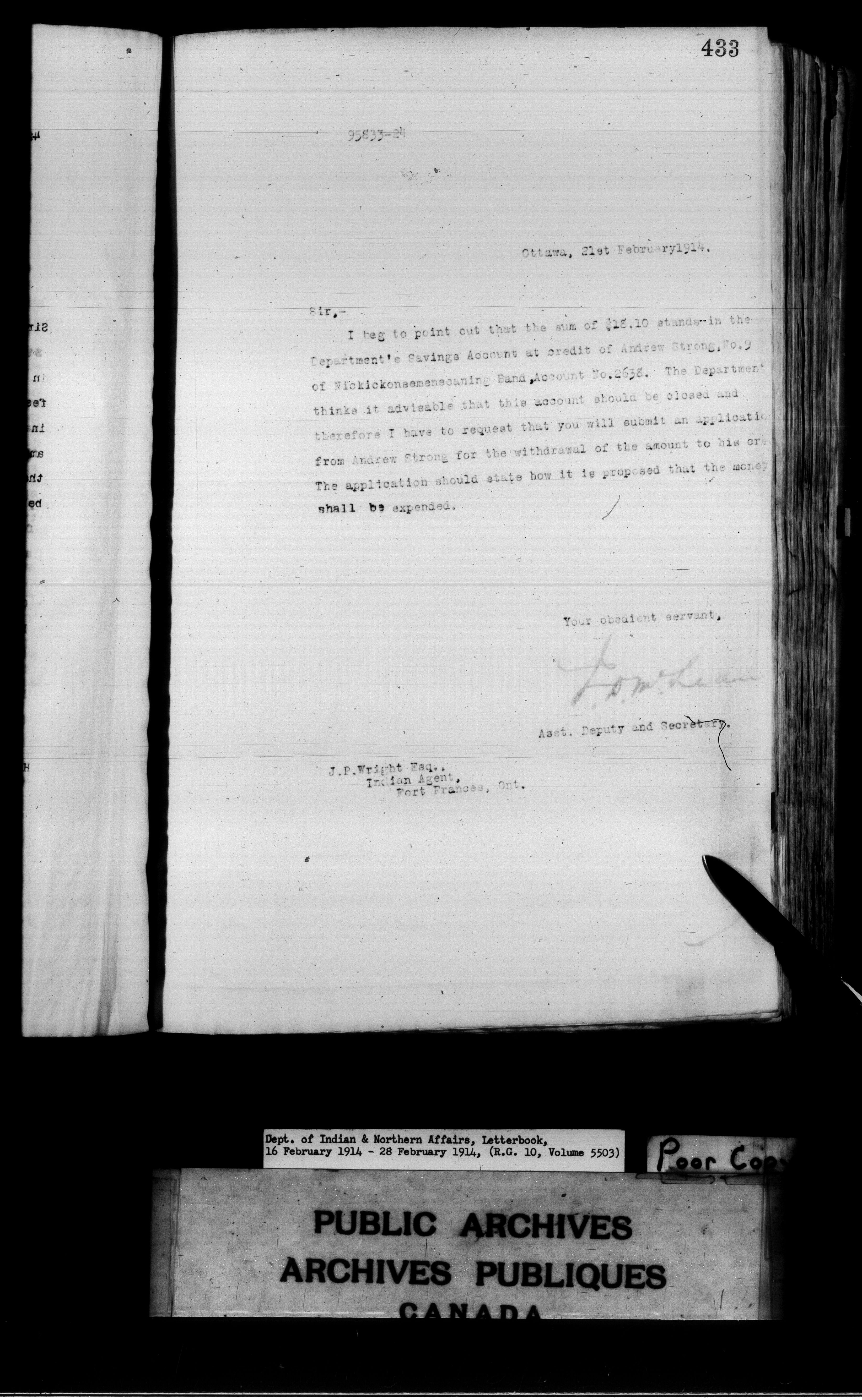 Department of Indian Affairs : Departmental letterbooks : C-8877