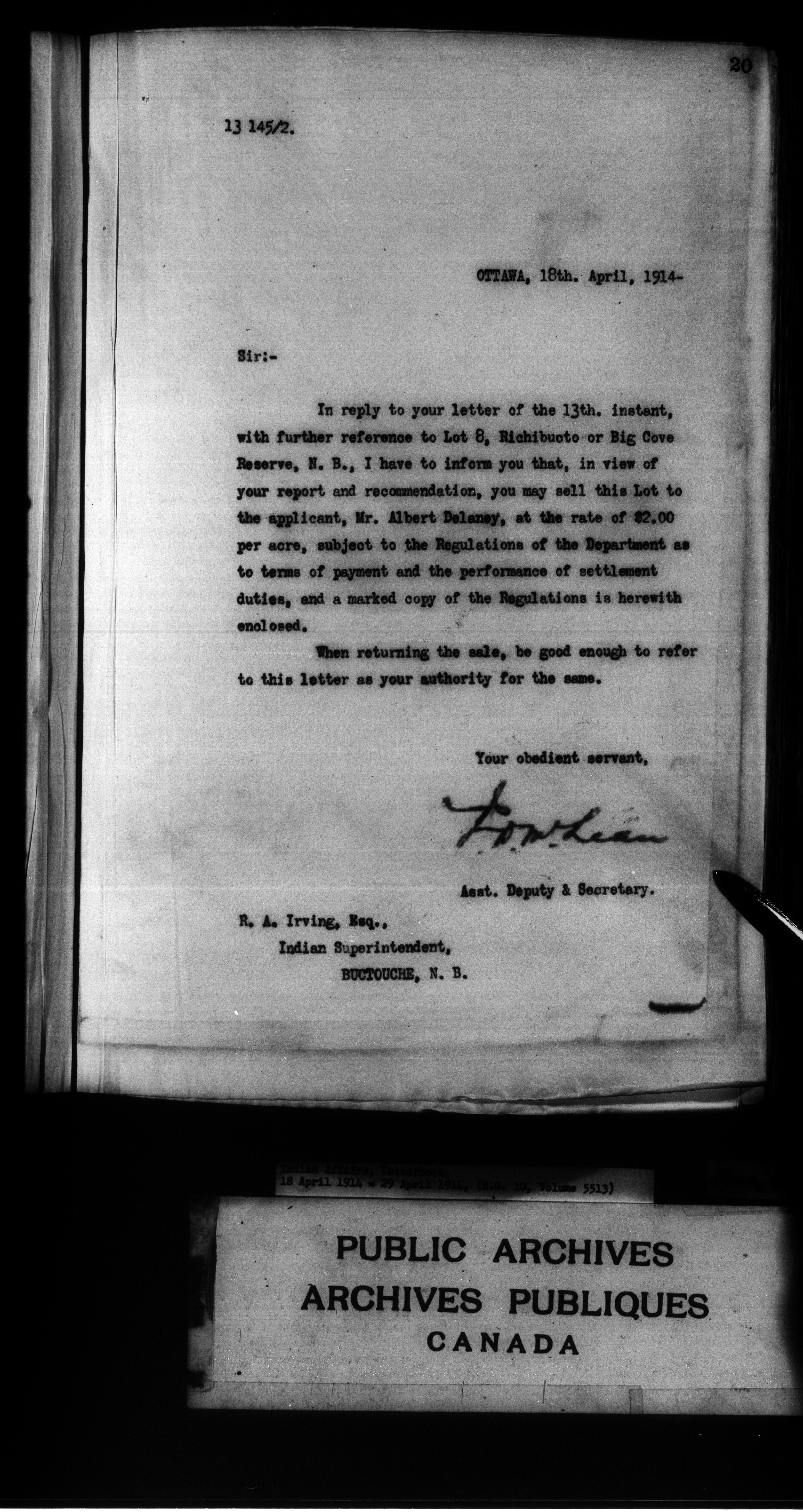 Department of Indian Affairs : Letterbooks of out-going correspondence relating to the administration of Indian Affairs in both eastern and western Canada, 1871-1920 - 8881