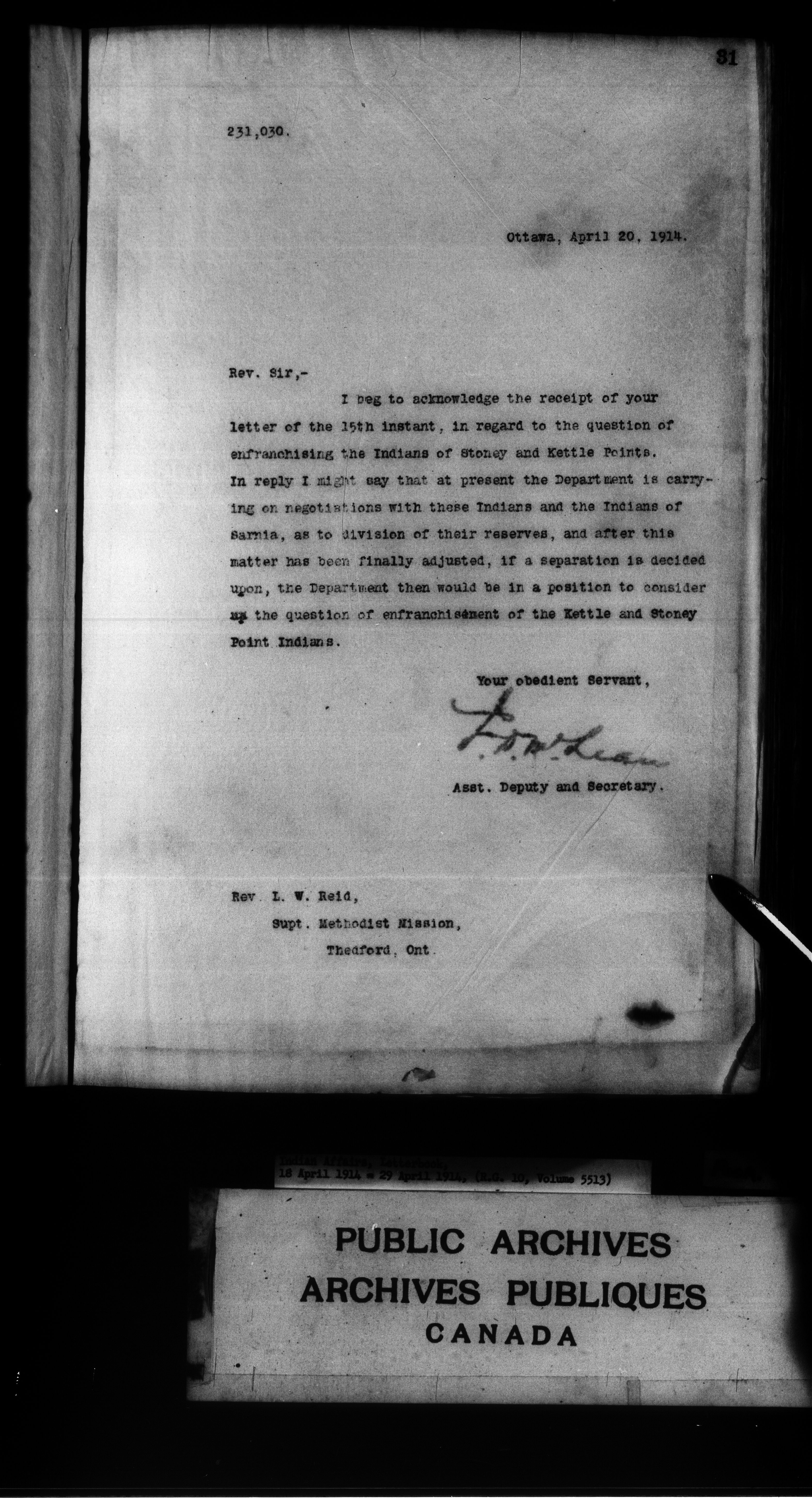 Department of Indian Affairs : Letterbooks of out-going correspondence relating to the administration of Indian Affairs in both eastern and western Canada, 1871-1920 - 8881