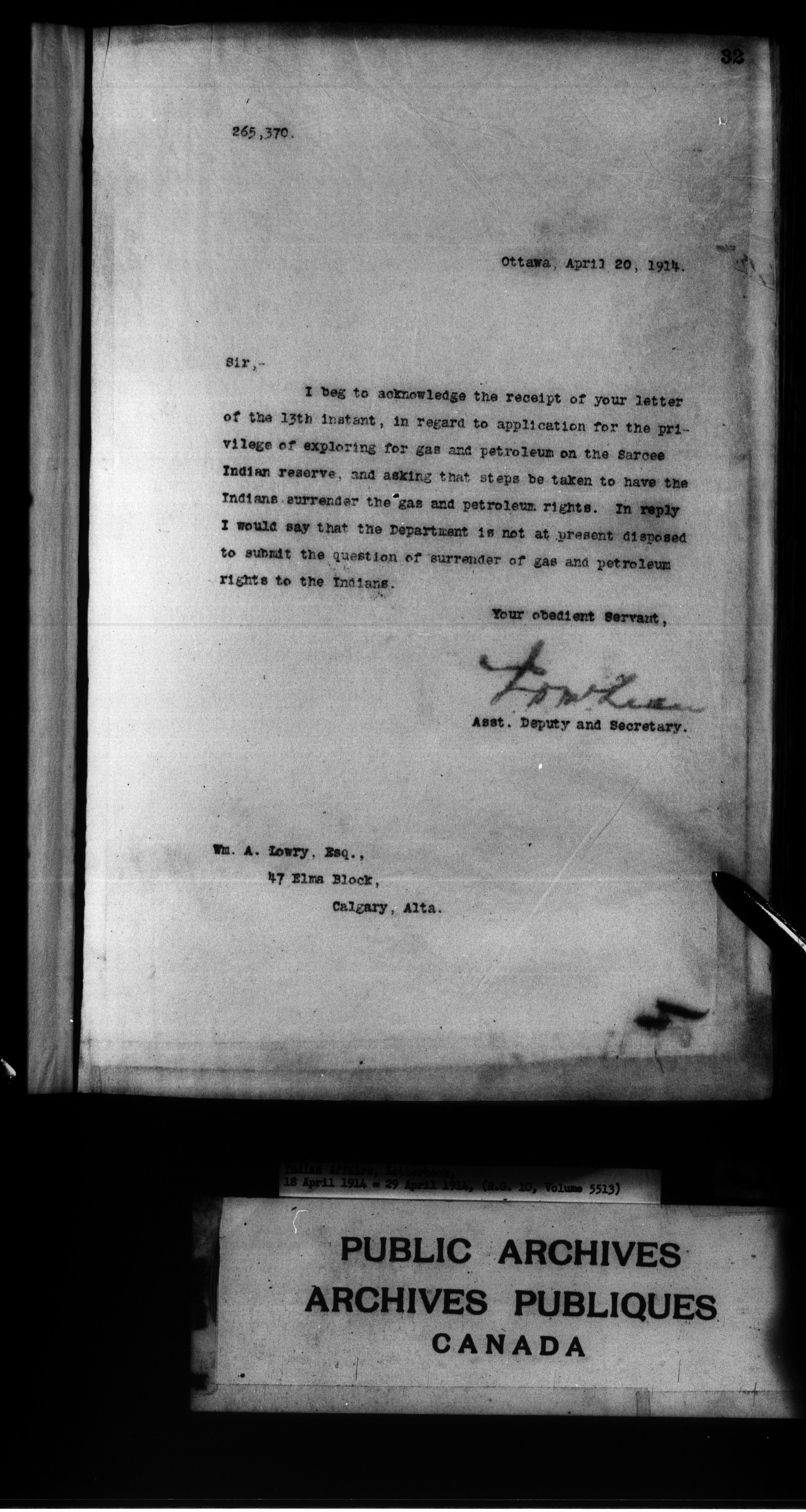 Department of Indian Affairs : Letterbooks of out-going correspondence relating to the administration of Indian Affairs in both eastern and western Canada, 1871-1920 - 8881