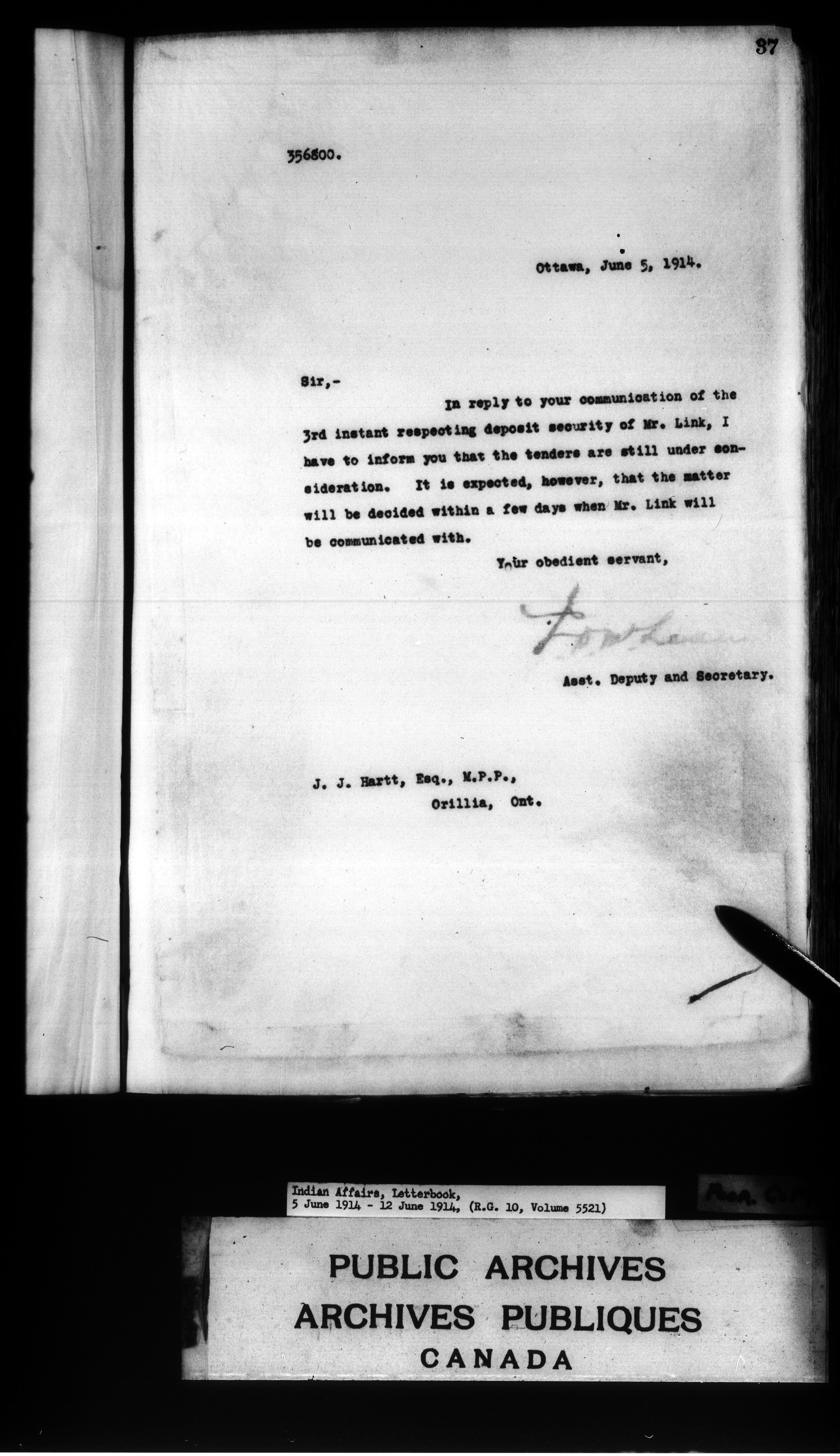 Department of Indian Affairs : Letterbooks of out-going correspondence relating to the administration of Indian Affairs in both eastern and western Canada, 1871-1920 - 8883