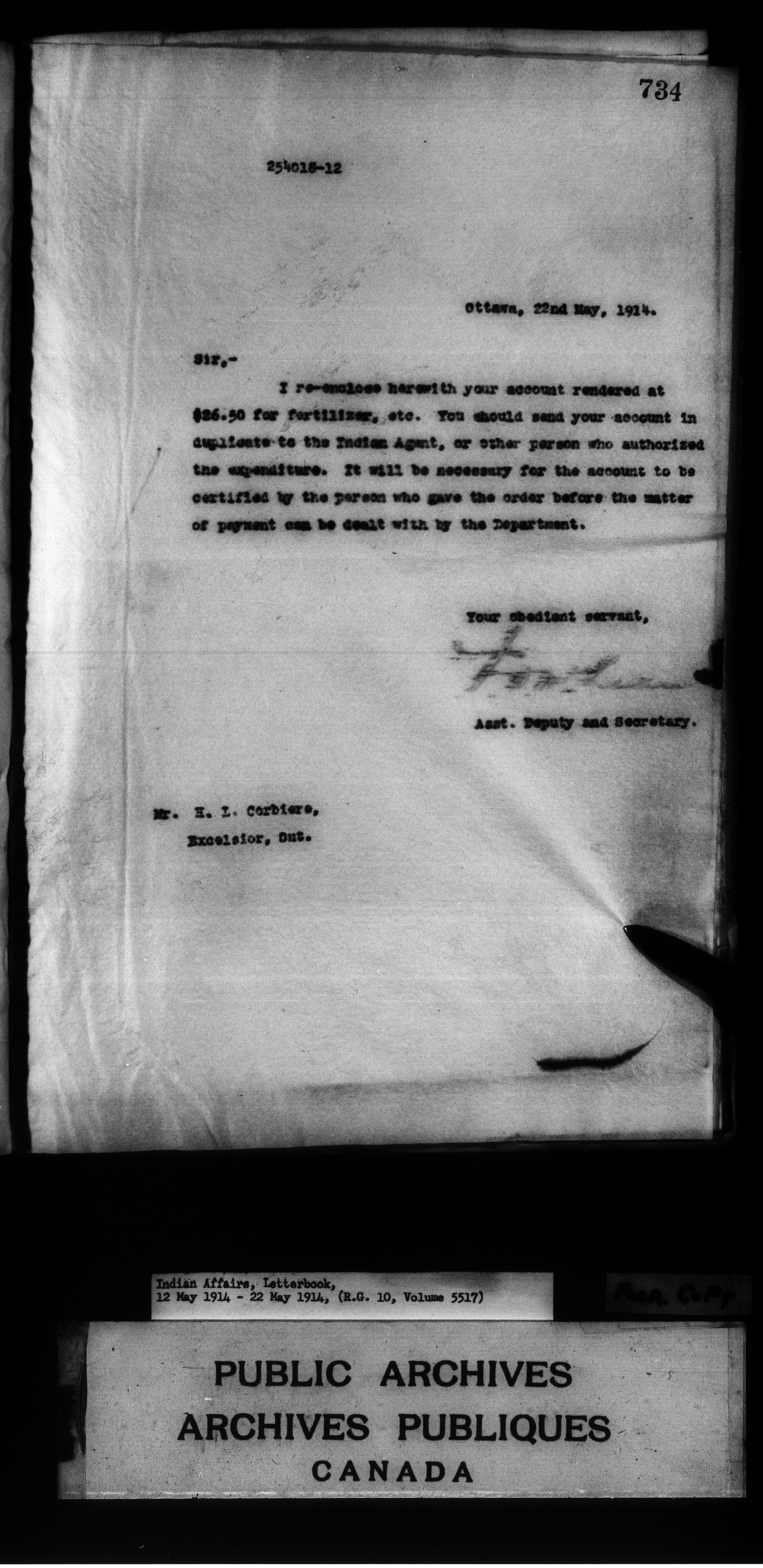 Department of Indian Affairs : Letterbooks of out-going correspondence relating to the administration of Indian Affairs in both eastern and western Canada, 1871-1920 - 8883