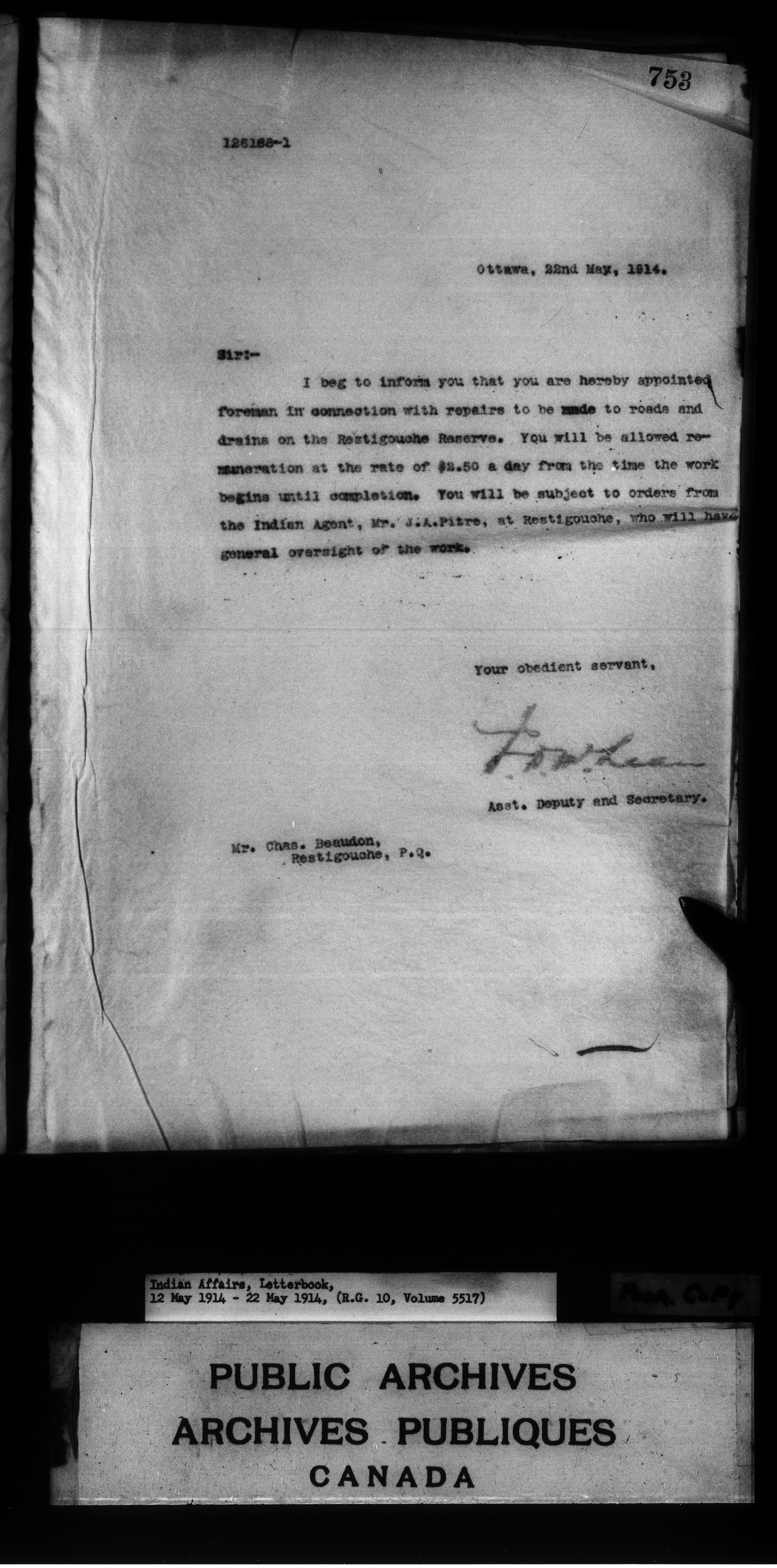 Department of Indian Affairs : Letterbooks of out-going correspondence relating to the administration of Indian Affairs in both eastern and western Canada, 1871-1920 - 8883