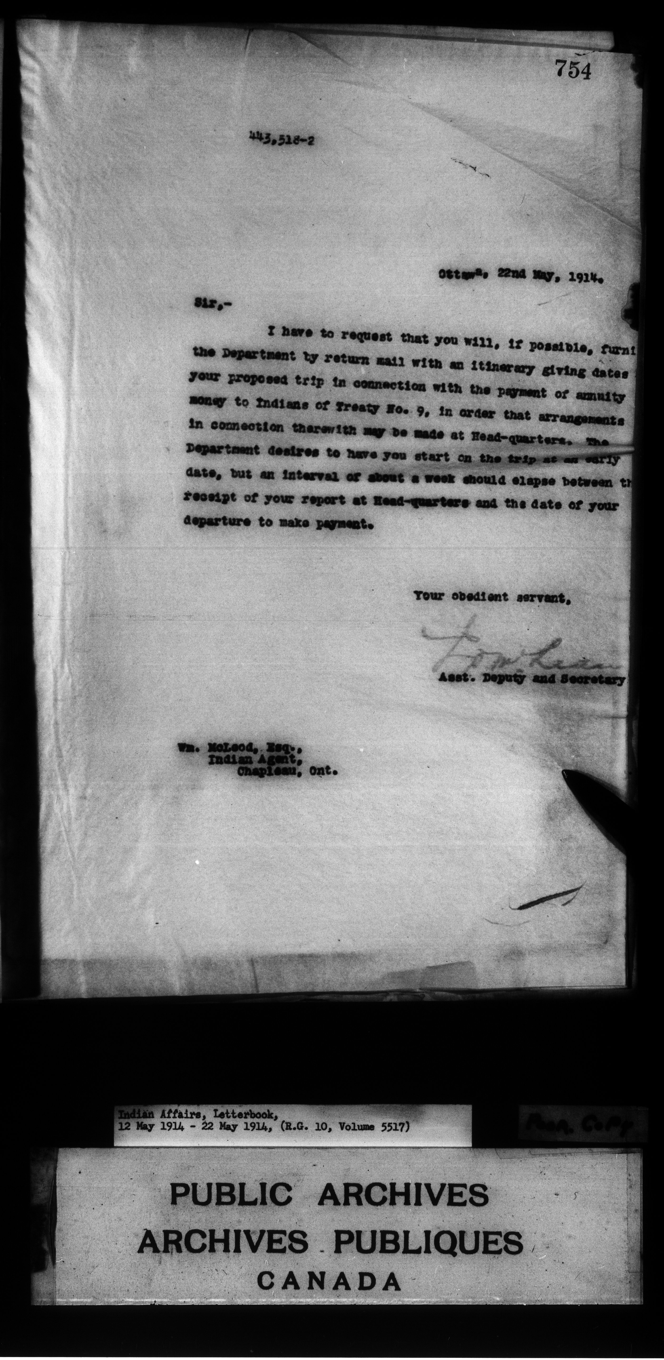Department of Indian Affairs : Letterbooks of out-going correspondence relating to the administration of Indian Affairs in both eastern and western Canada, 1871-1920 - 8883