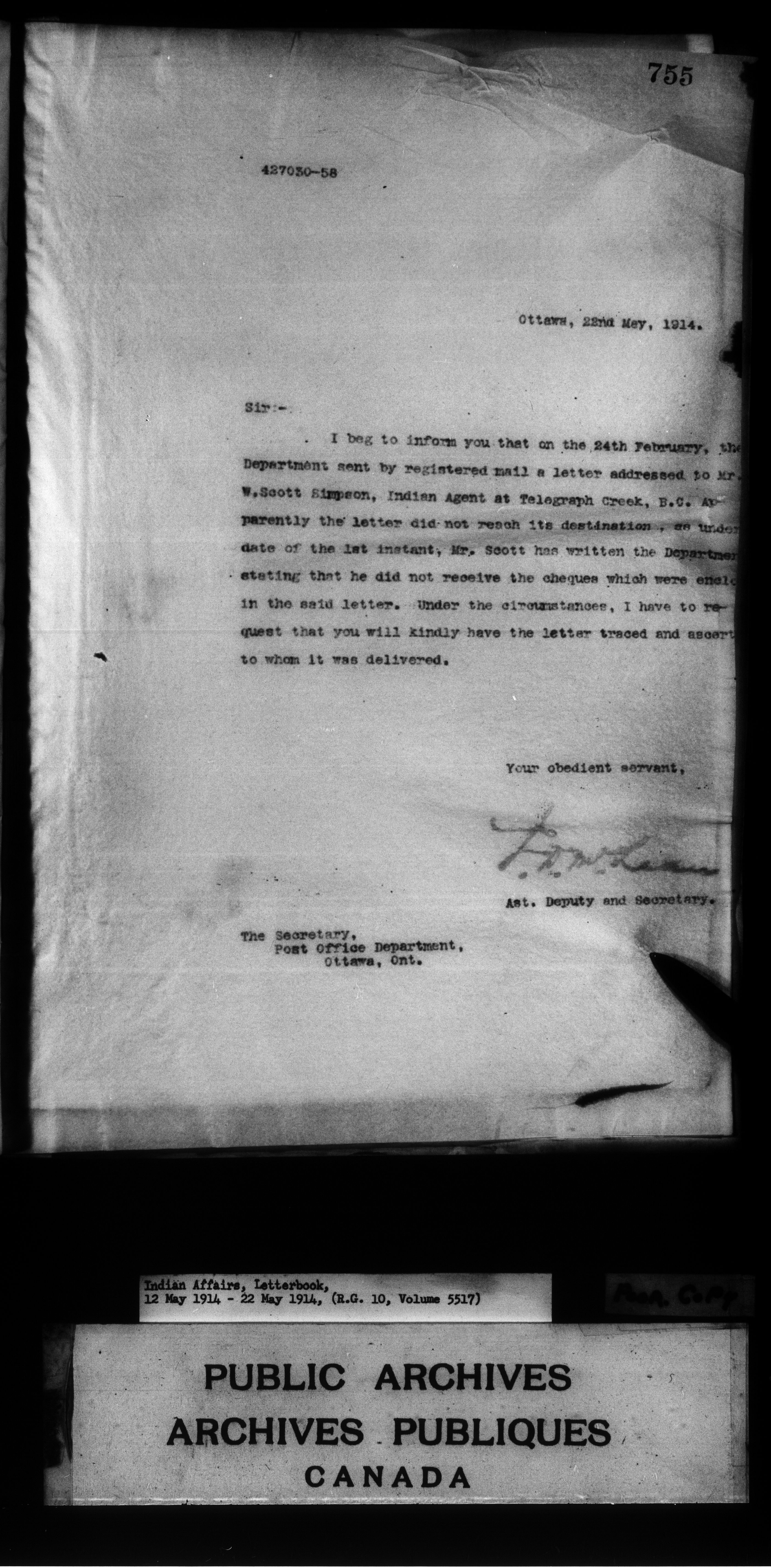 Department of Indian Affairs : Letterbooks of out-going correspondence relating to the administration of Indian Affairs in both eastern and western Canada, 1871-1920 - 8883
