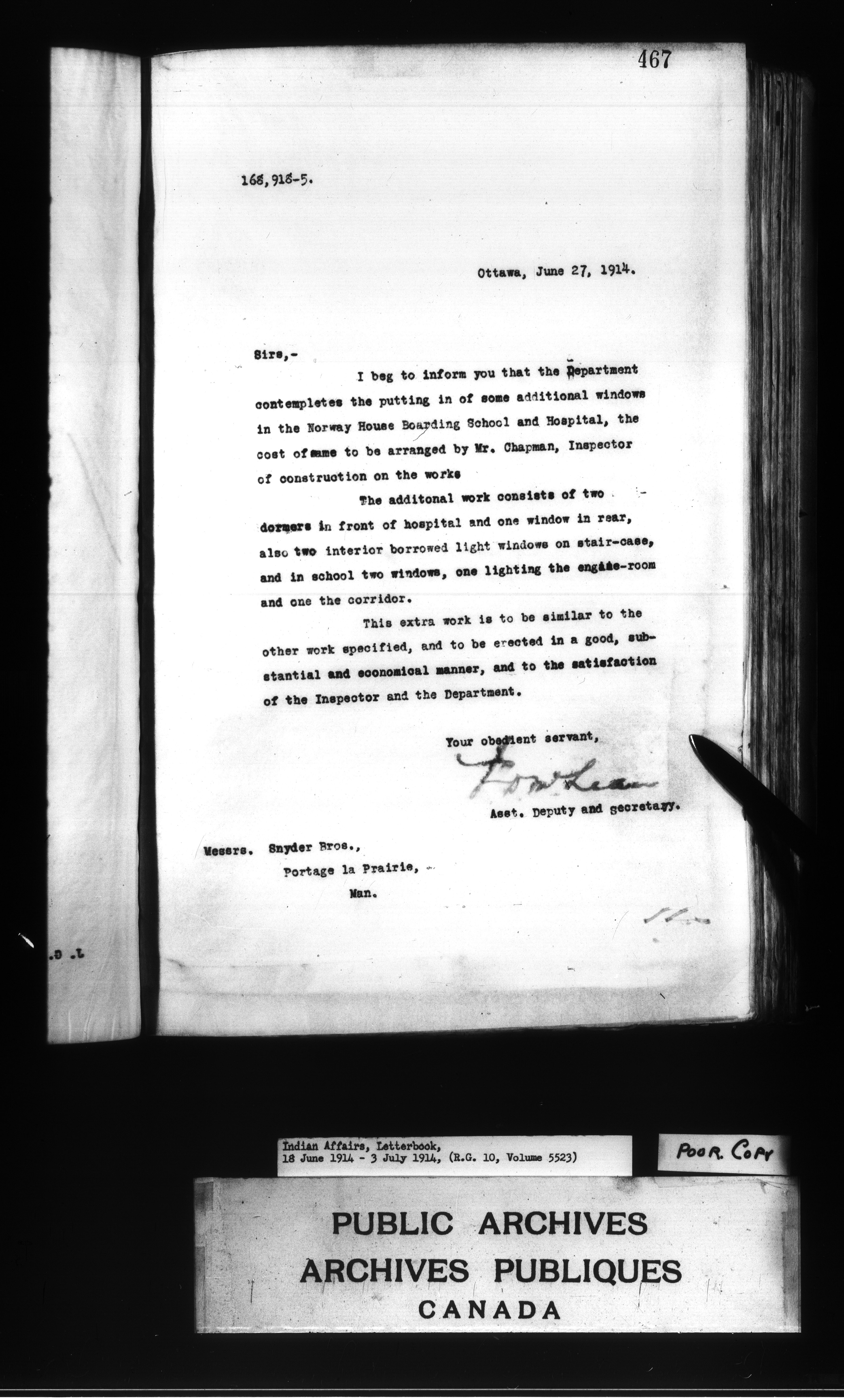 Department of Indian Affairs : Departmental letterbooks : C-8885