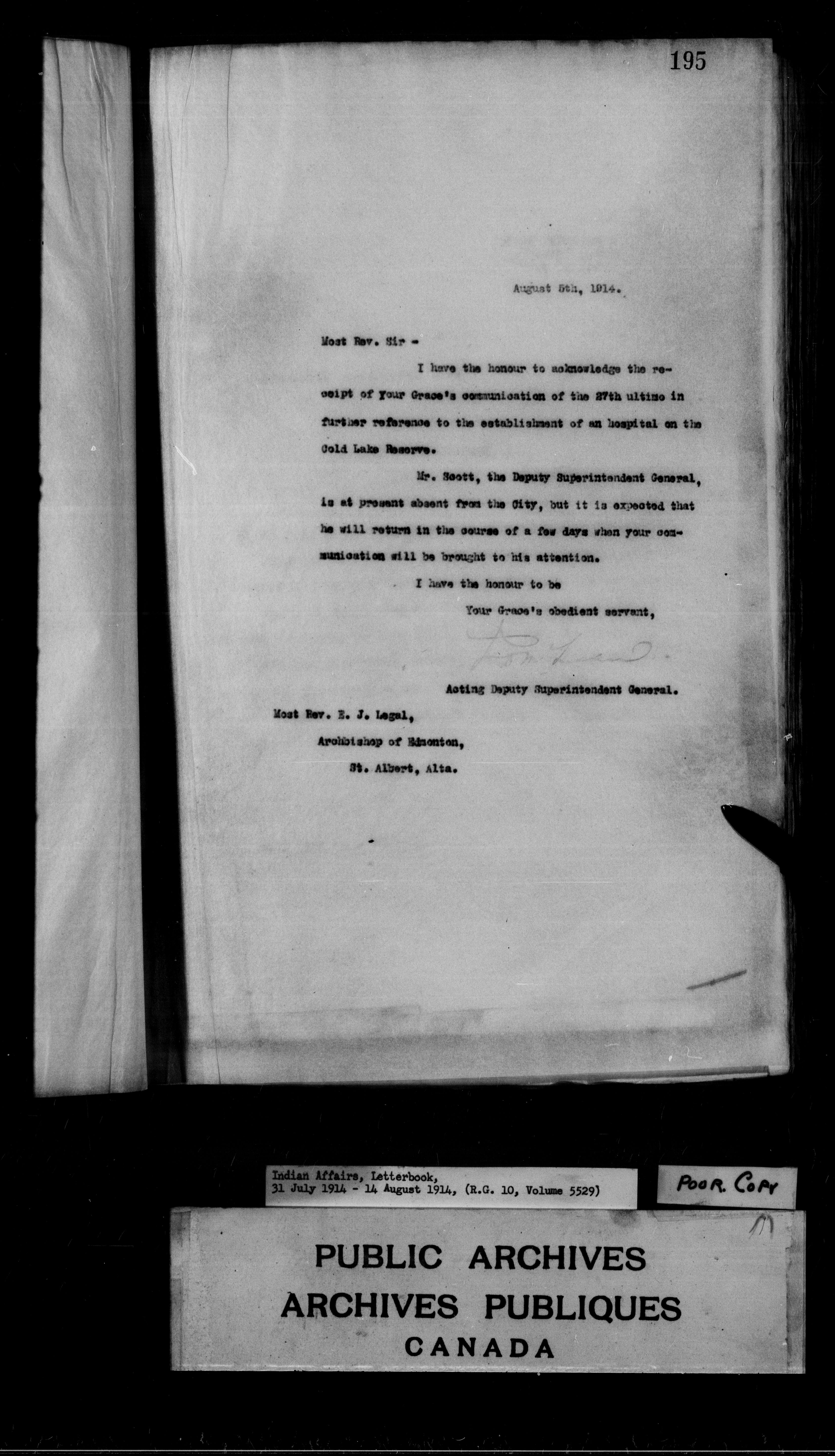 Department of Indian Affairs : Letterbooks of out-going correspondence relating to the administration of Indian Affairs in both eastern and western Canada, 1871-1920 - 8886